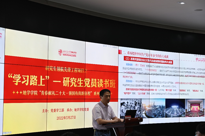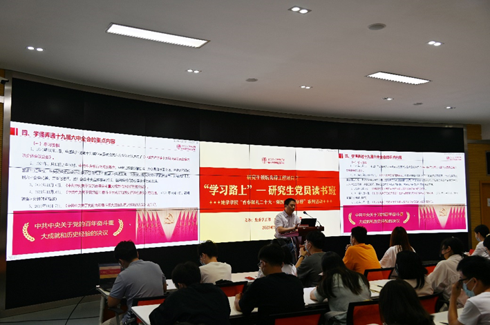 为喜迎党的二十大,号召全体研究生党员读原著,学原文,筑牢理想信念。5月27日,由党委学工部主办,公司党委承办的研究生领航先锋工程项目之“学习路上”—研究生党员读书班专题讲座于X4243顺利举行,本次读书班由公司党委书记关秦川主讲,以“原原本本读决议,逐字逐句悟精神”—“从三个‘历史决议’中回溯党的百年奋斗成就”为题,讲座由BEATS员工党建文强老师主持。