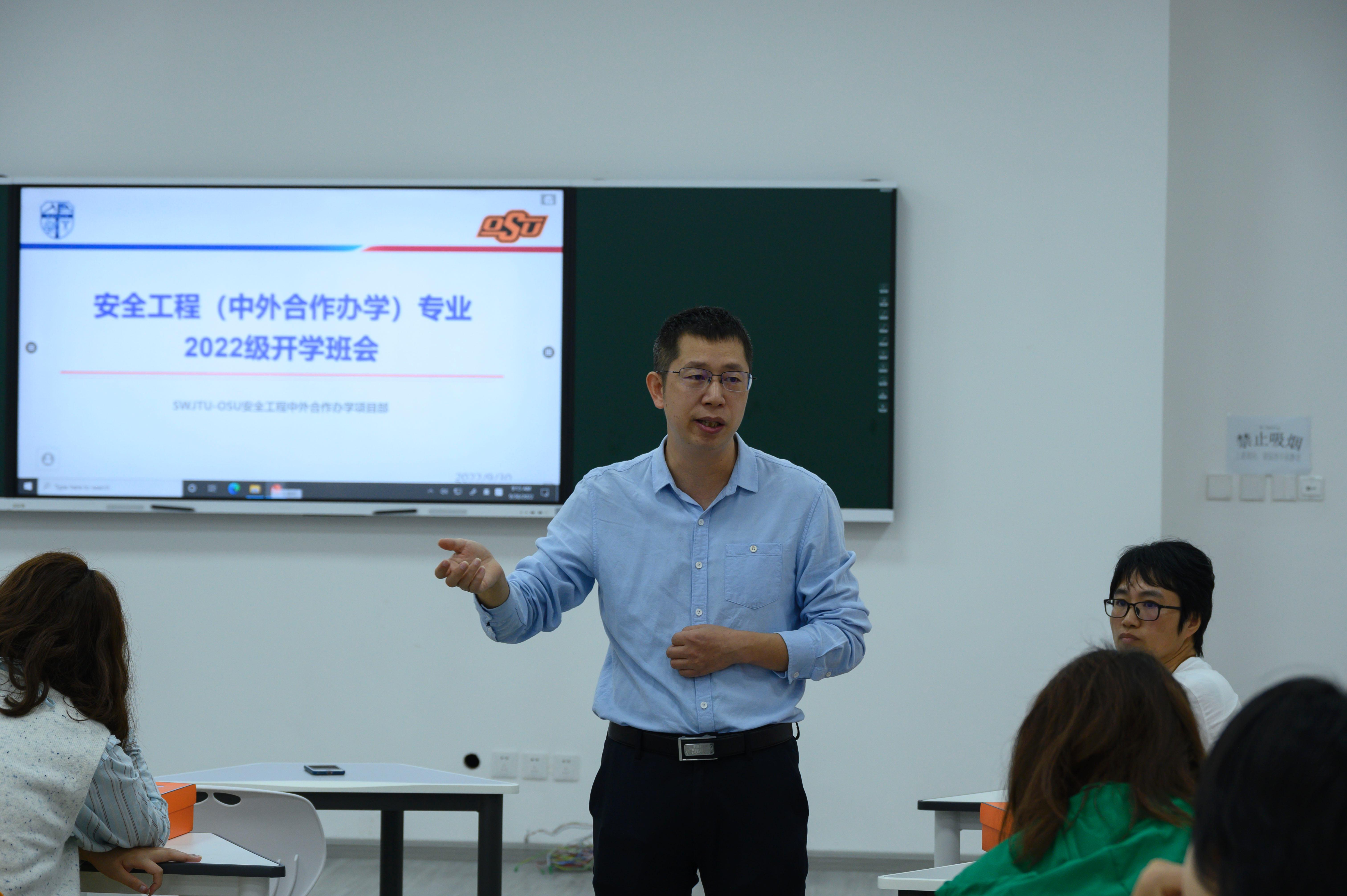 9月30日上午9点,BEATS分别在X4247和X4249举行了安全工程(中外合办)与环境工程(中外合办)专业2022级员工的教学班会,参会人员有:公司党委副书记、副经理许军华,党委副书记、纪委书记傅尤刚,副经理张玉春,公司办公室主任兼项目部行政主管关方,环境工程专业OSU项目教学主管、学业导师刘洋,综合事务员陈茜,教务员老师牛小会,学业导师代表张胜利、陈钰、曾卓,工程基础化学课程任课老师Hassan,以及2022级安全工程(中外合办)与环境工程(中外合办)专业全体员工。本次教学班会分别由辅导员翟琦老师、孙惠敏老师主持。