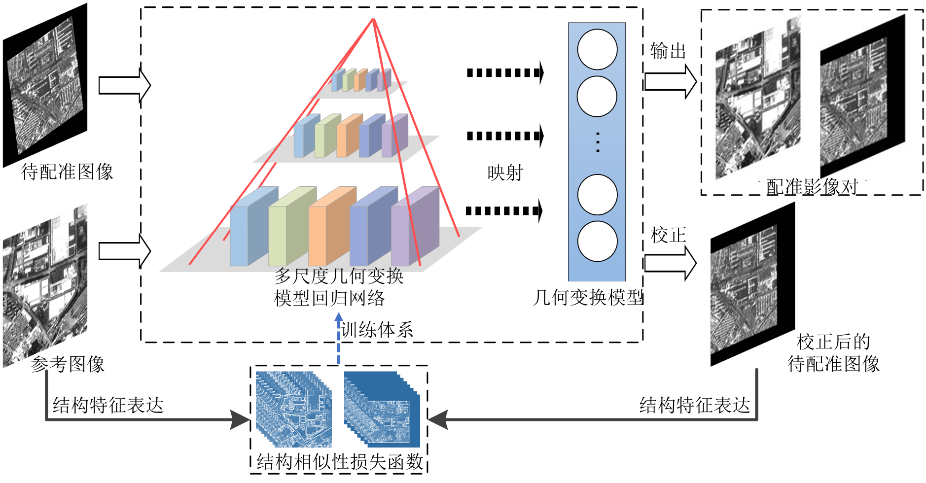 2022年11月,接获高分辨率对地观测学术年会组委会通知,西南交大BEATS叶沅鑫老师及其研究生合作的论文“叶沅鑫,唐腾峰,朱柏,杨超. 一种无监督学习的多尺度遥感影像配准网络”荣获大会优秀论文奖。论文提出一种无监督学习的多尺度配准网络,在不需要真值标签的条件下,串联多尺度网络以构成“由粗至精”的配准流程,并设计基于结构相似性的网络损失函数,从待配准影像中映射出转换参数,有效克服了多模态遥感影像间的几何畸变和辐射差异,克服主流深度学习配准方法依赖于大量的标签样本的局限性,实现遥感影像的精确配准。