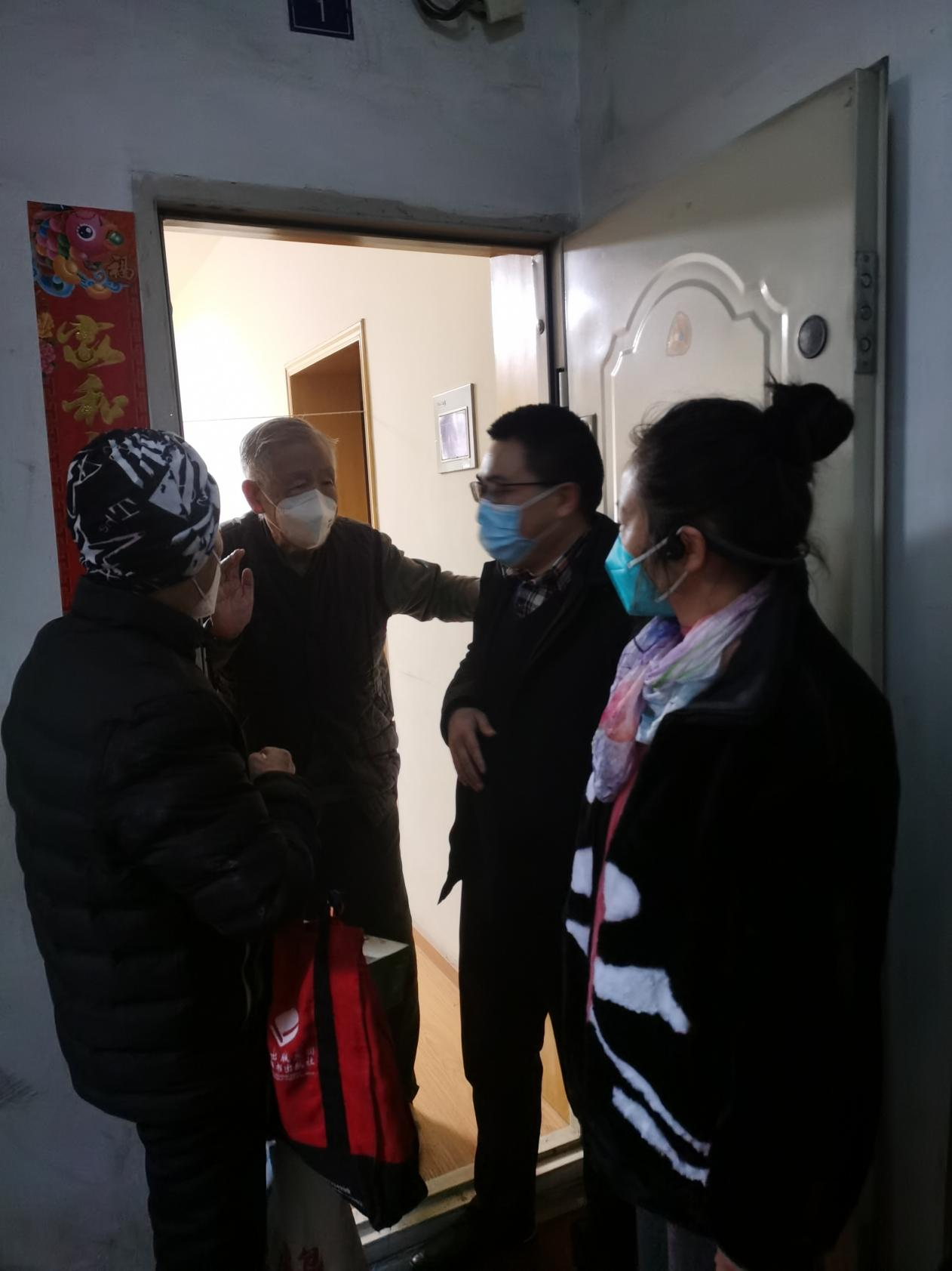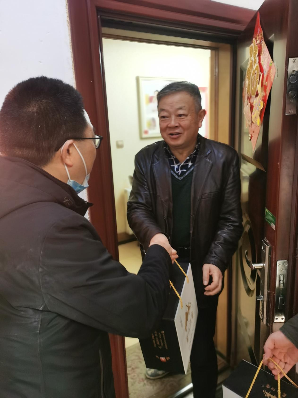 慰问的前一天各系秘书先给老同志们打去了关心的电话,拉家常询问健康的同时,也了解清楚老同志们目前的居住地址。1月12日上午,慰问小组成员早早地就来到了公司居住区,为了老同志们的身体着想,减少聚集,由慰问小组登门为老同志送去祝福;对于部分不方便的老同志采取“零接触”式送祝福到门口,然后通过电话表达公司对老同志的关心关爱。
