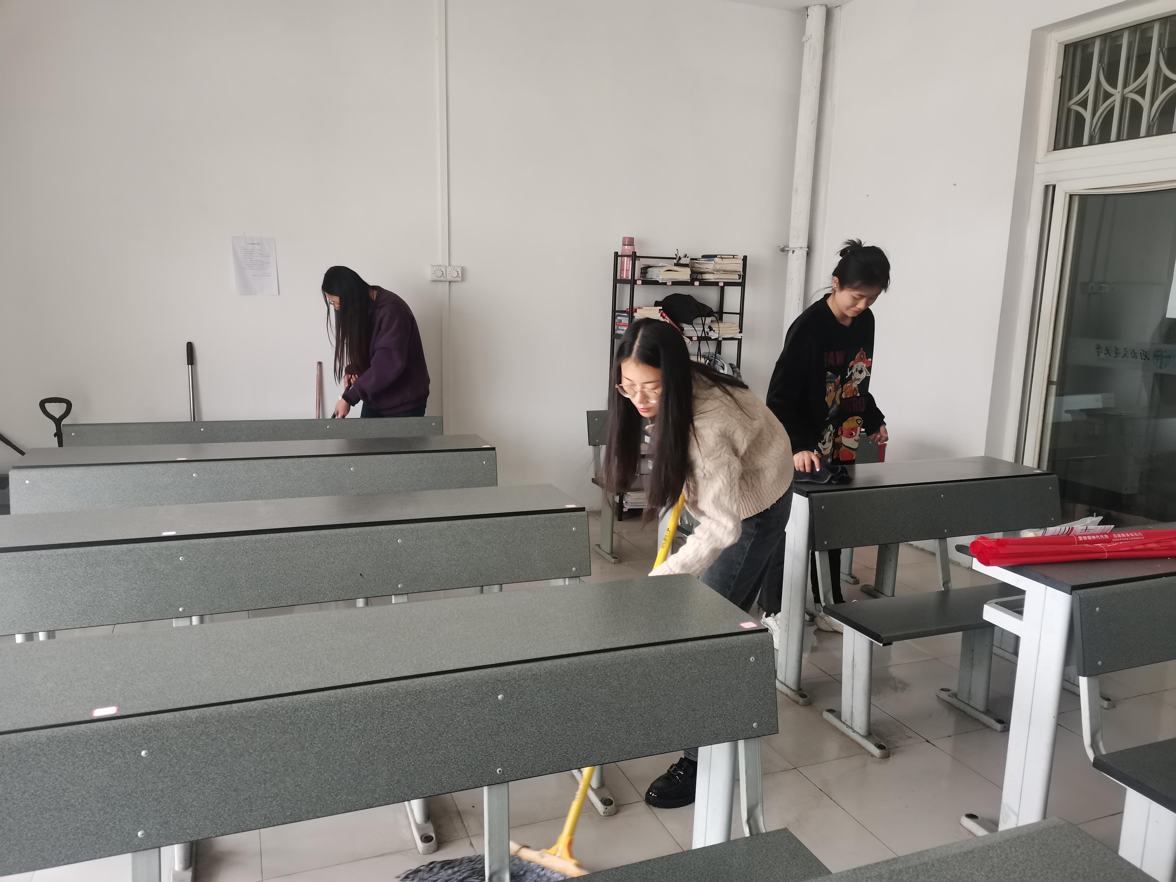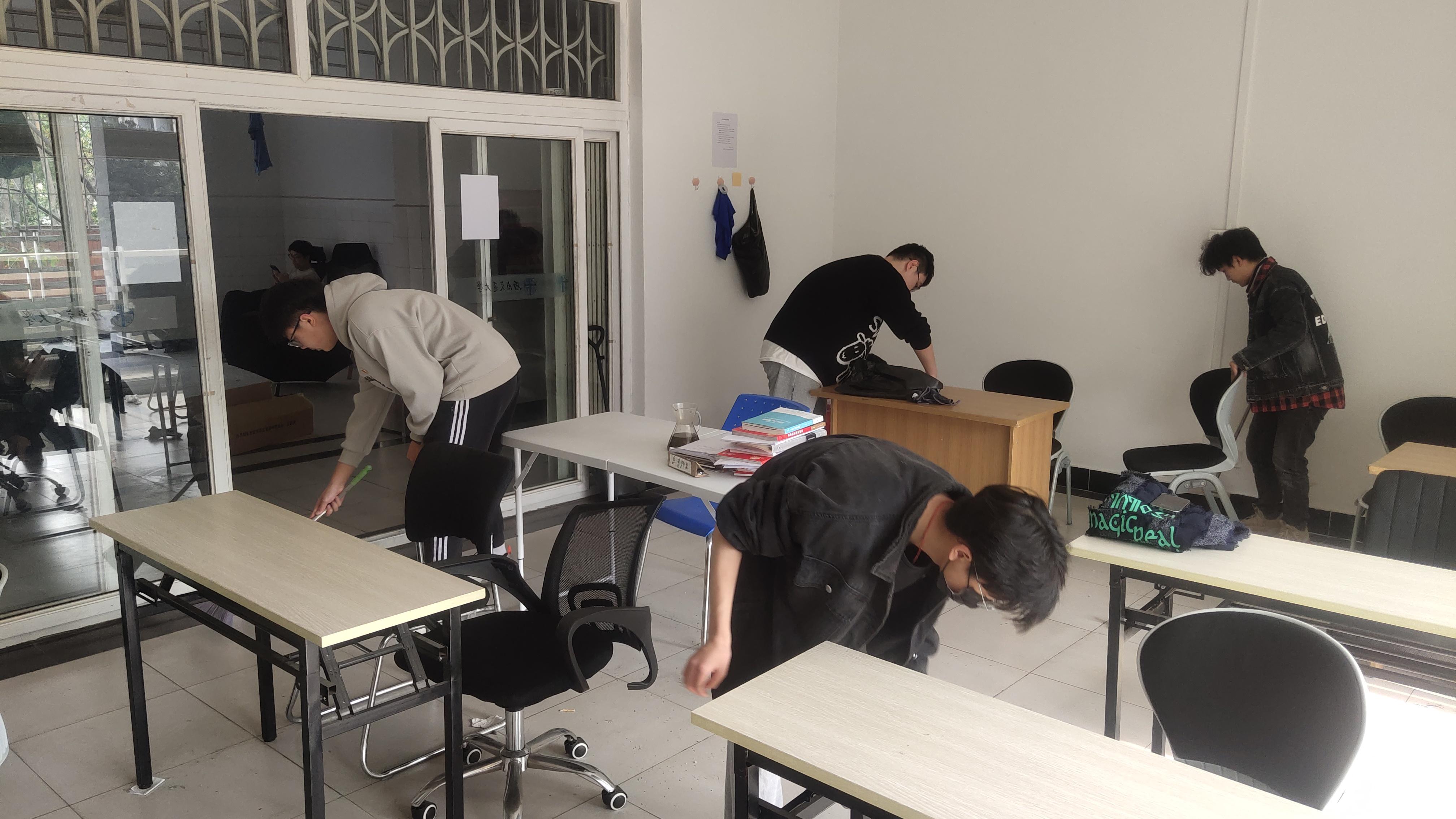 寒假期间自习室暂停开放,本次活动也是新学期第一次自习室清扫活动。志愿者熟悉了个人分工后,从自习室卫生情况入手,合作对自习室内地面、桌面、墙面的污渍进行清洁,检查了各电器的工作情况,重新张贴受损的志愿者工作说明,并共同组装了上学期末由员工会购置的新置物架,方便同学们临时收纳书籍杂物。志愿者们在为自习室增添亮色的同时,也收获了奉献互助、服务他人的快乐,以亲身实践领悟雷锋精神“为人民服务”的深刻内涵。