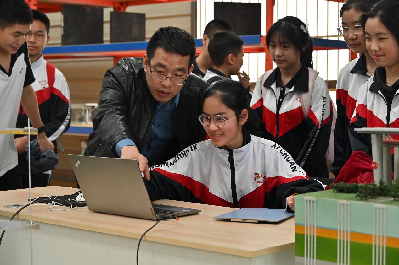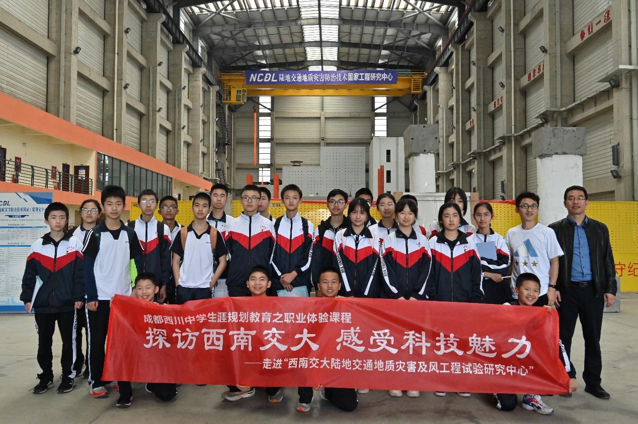 午后,西川中学的员工前往陆地交通地质灾害防治技术国家工程研究中心参观,研究中心的王武斌老师为同学们介绍了中心发展及取得的科研成果,以及目前国内最大的地震模拟振动台,同时让同学们参观了多功能大型智能抗震体验房。同学们也在王武斌老师指导下亲身体验结构共振实验。