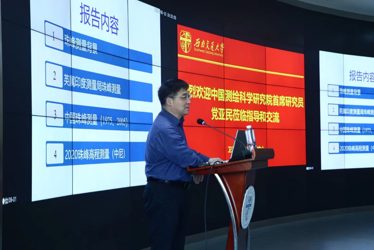 测绘系黄丁发教授对党亚民院士在百忙中到访西南交大BEATS表示热烈欢迎并主持了报告会。参与学术交流的有冯威、龚晓颖、周乐韬、游为等多名测绘系骨干教师,以及其他相关兄弟单位,包括四川省第一测绘工程院、四川中水成勘院测绘工程有限责任公司等单位代表。相关学科的博士、硕士研究生及本科生也参加了本次学术交流会。