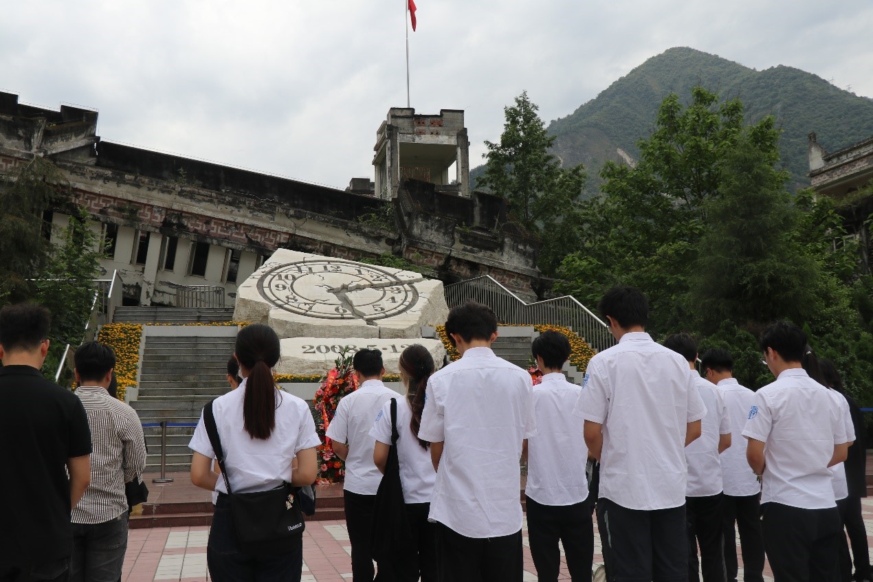 在映秀镇漩口中学地震遗址,讲解老师带领师生参观公司遗址,大片残垣断壁近在咫尺,地震之殇扑面而来,一个个真实的事例,保存下来的一砖一瓦、一楼一顶,都引发大家对生命的思考。
