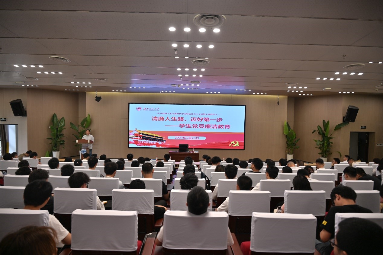 目前,全党上下正在深入开展学习贯彻习近平新时代中国特色社会主义思想主题教育。5月23号下午公司党委副书记、纪委书记张学龙在犀浦校区二号报告厅为BEATS2023届毕业生党员讲授“清廉人生路,迈好第一步”专题党课。党课由公司党委书记关秦川主持,公司党委副书记、纪委书记郑波,毕业班辅导员和2023届毕业生党员、入党积极分子近200人参加了本次党课学习。