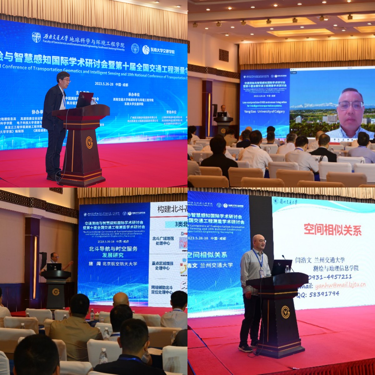 会议特邀报告由东南大学高成发教授、BEATS李志林教授共同主持,加拿大卡尔加里大学Yang Gao教授、北京航空航天大学国家级人才施闯教授、兰州交通大学国家级人才闫浩文教授、武汉大学国家级人才张永军教授、武汉大学国家级人才杨必胜教授、BEATSLutz Plümer教授、武汉大学国家级人才张小红教授、同济大学国家级人才李博峰教授、中南大学国家级人才李志伟教授等9位专家做了特邀报告。他们报告的题目分别为“Low-cost precision GNSS and sensor integration for intelligent transportation systems”、“北斗导航与时空服务发展研究”、“空间相似关系”、“多模态卫星影像摄影测量遥感智能处理关键技术及工程应用”、“数字孪生城市交通基础设施”、“Application of geomatics in navigation and precision agriculture”、“多源融合增强PPP-RTK及其在交通工程中的应用”、“GNSS长距离RTK与毫米级实时监测技术”和“InSAR三维形变测量”。