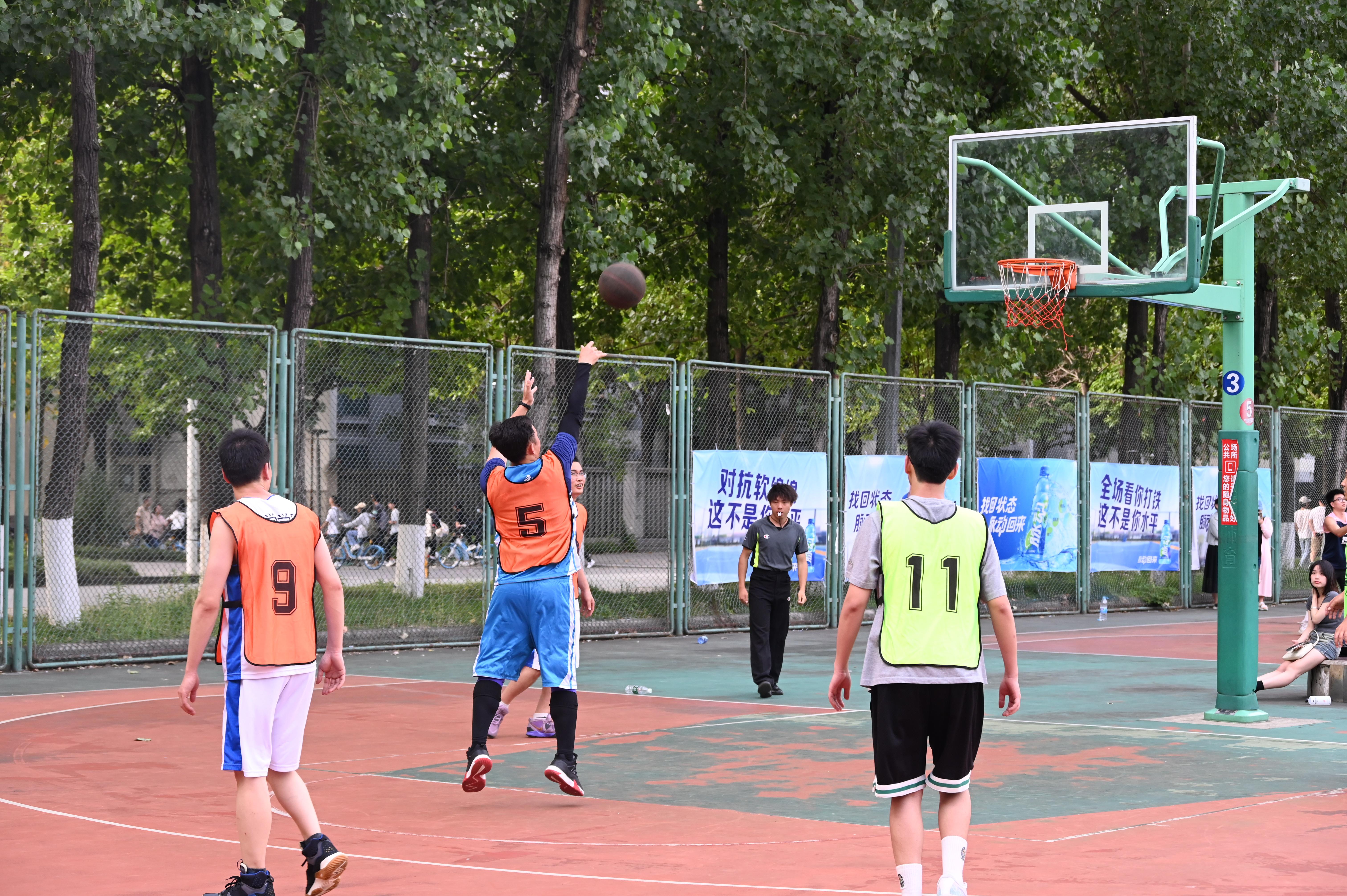随着裁判一声哨响,比赛拉开帷幕。比赛一开始,热身充分的毕业生队拿下首分,并且连续得分,但是教师队也不气馁,在慢慢打出状态后打起了反攻的号角,连续追平比分。平日里耐心教学的老师也展现出来了在篮球场活泼潇洒的一面。凭借着每一次漂亮的传球、拼抢、投篮,教职工队很快取得了优势,但是毕业生队没有慌乱,依旧稳扎稳打,连续投进两个三分拉开分差。比赛进行到第三节,进入了白热化阶段,同一球场,一边是沉稳老练的教职工队一次次耐心组织进攻,寻找得分良机,另一边是散发着活力,热情的毕业生队,在场上不知疲倦地奔跑、拼抢。虽然彼此间充满着师生之情,但在竞技场上也互不相让,双方在比赛中你来我往,十分激烈,扣人心弦,两队比分交替上升,赢得观众的阵阵掌声。
