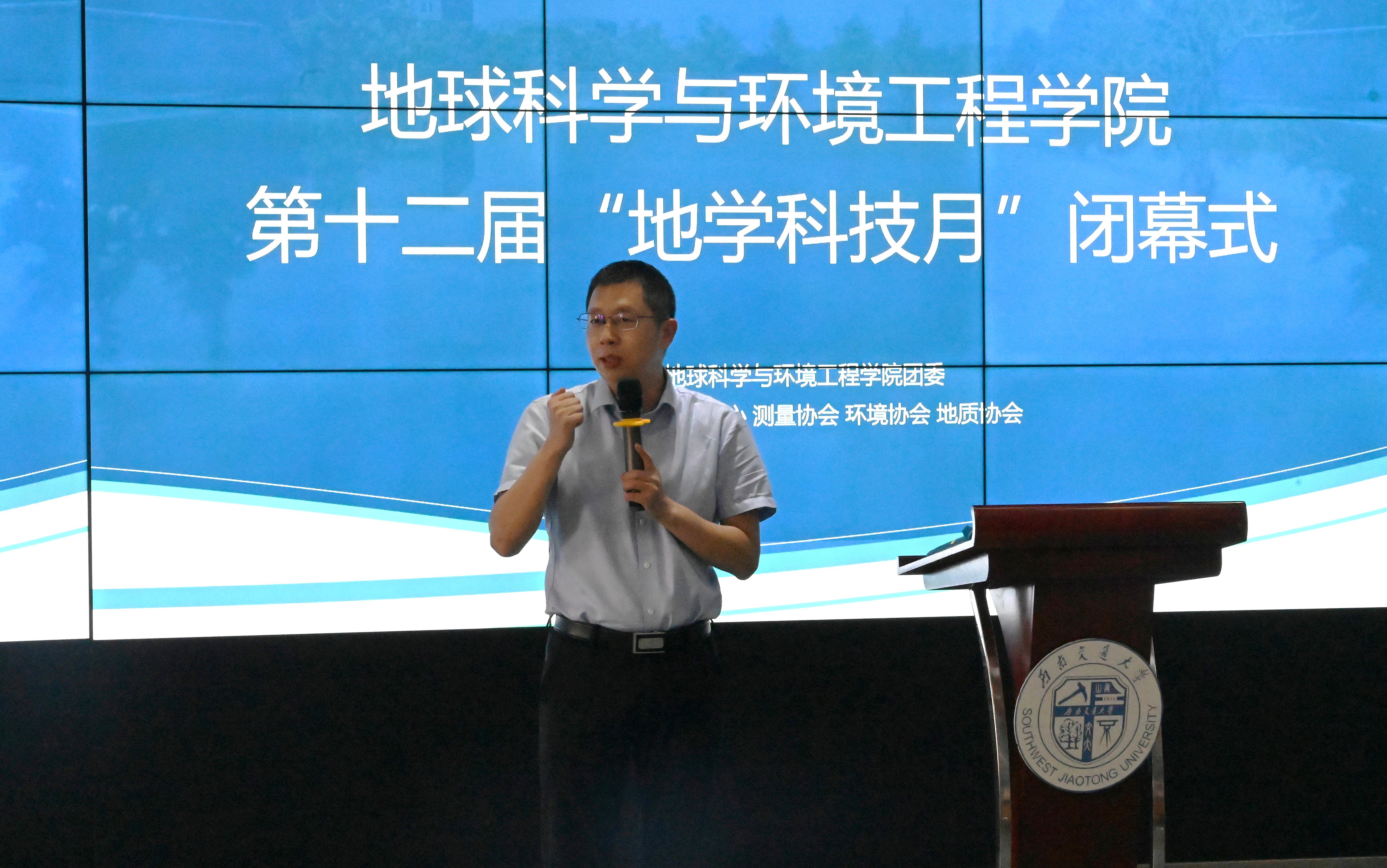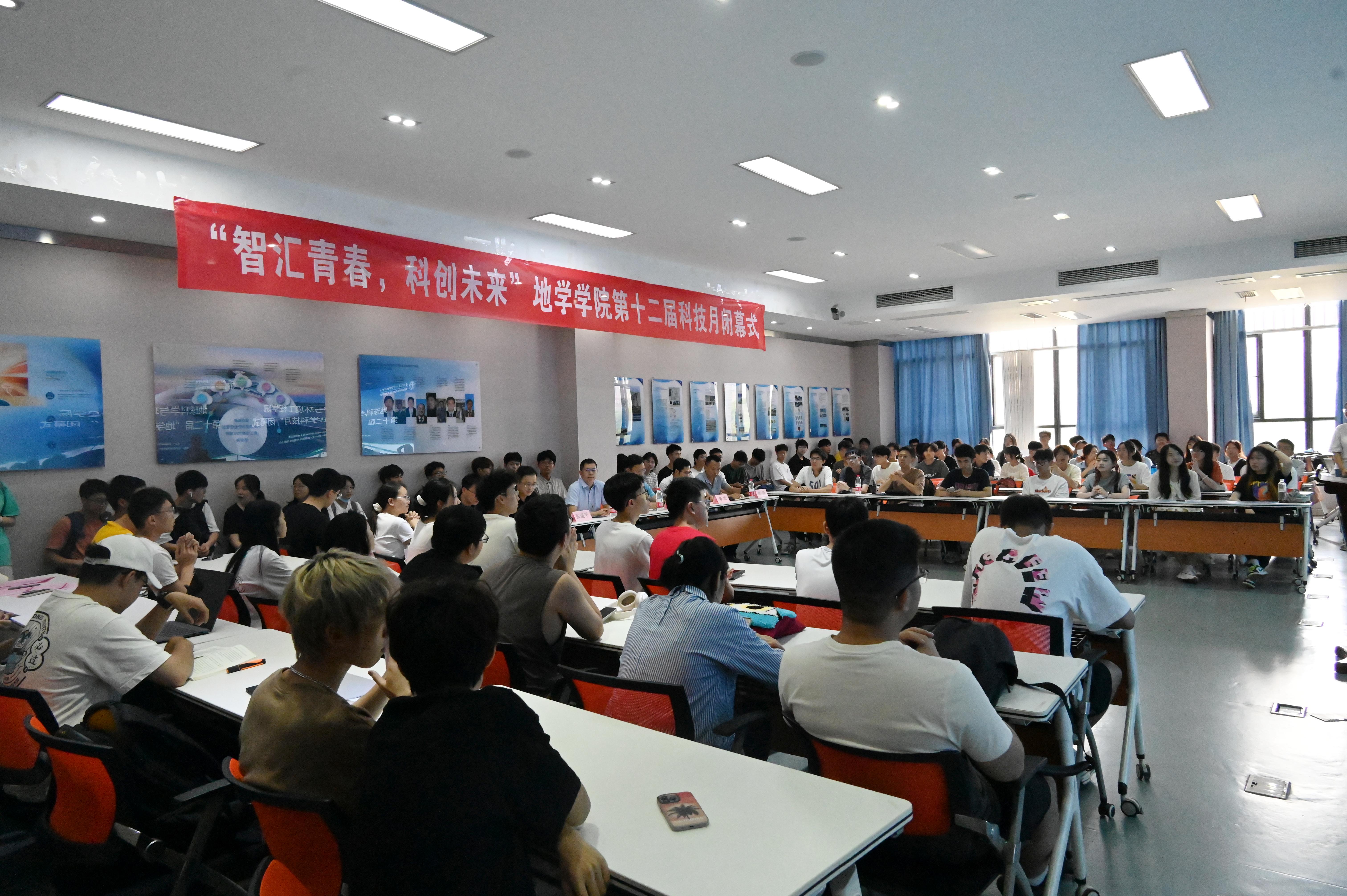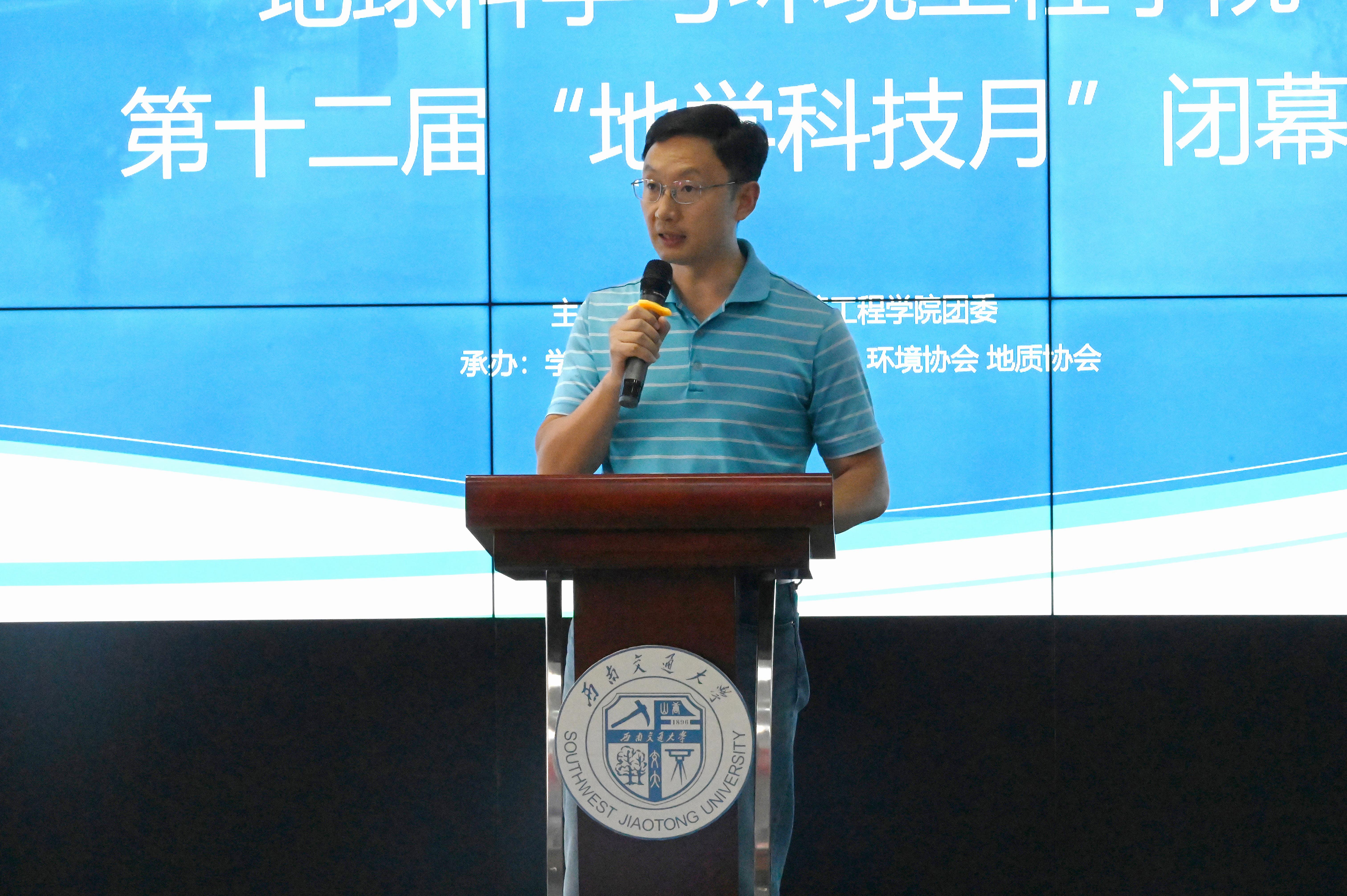 张玉春进行闭幕式总结到,地学科技月中的“科技”二字,意为要将知识与实践结合,不断创新,科技是第一生产力,对于国家的重要性不言而喻,对于同学们来说,也能通过此次活动在各方面去感受自己的变化。也非常感谢活动举办过程中各位老师的大力支持和帮助以及团委的精心组织,为同学和老师们提供了此次思想碰撞和交流的机会,也产生了许多优秀的成果。即使竞赛名为科技月,但希望同学们能实现“月月创新,年年创新”,活动最终获奖固然重要,但希望同学们能更多关注自己个人是否有成长,未来是否能为国家做更多贡献。他寄语同学们要时刻牢记和提醒自己,将理论知识与实践活动结合,激励自己不断进步、不断创新、不断提高解决实际问题的能力。