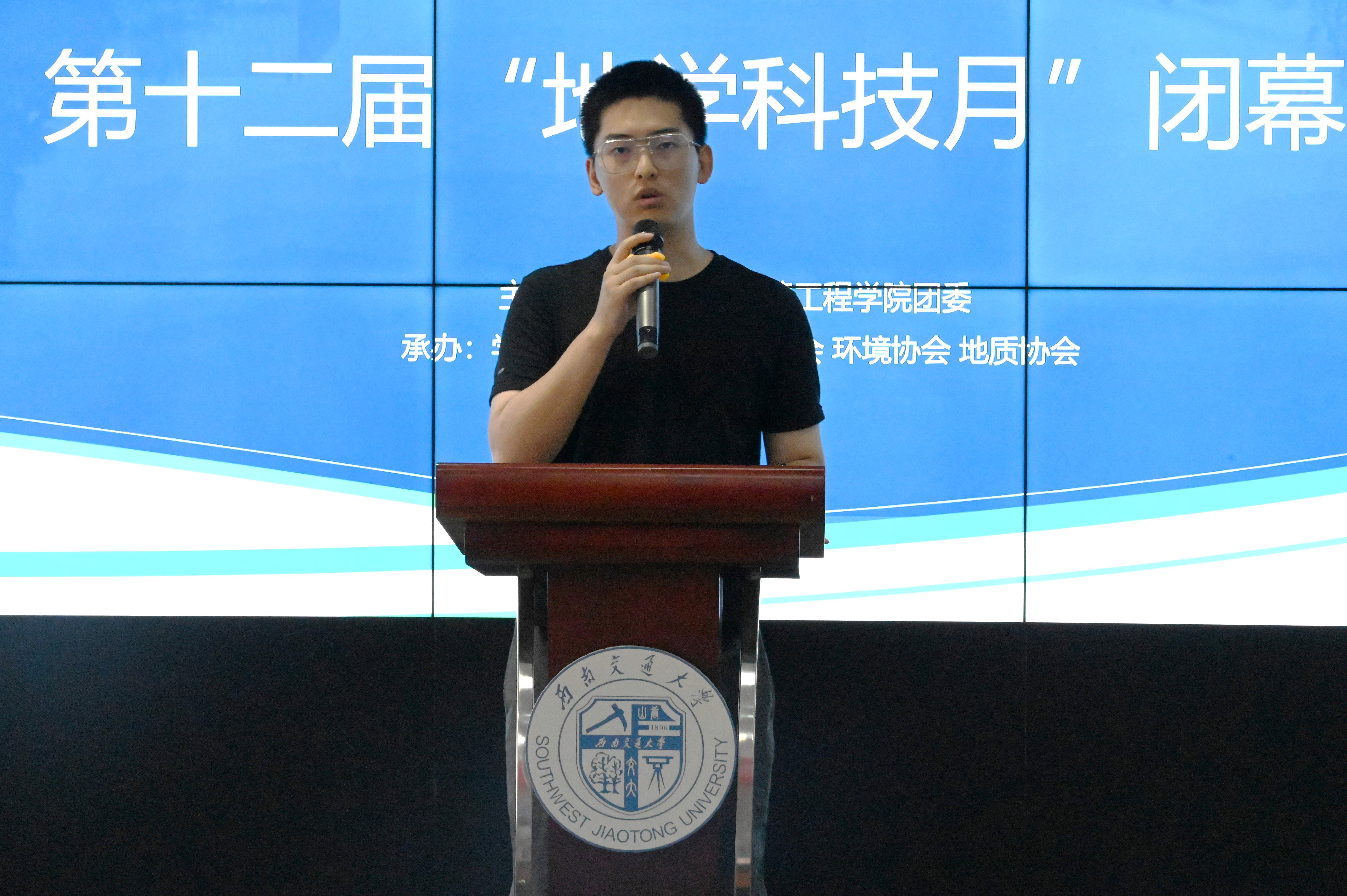 而后,地质技能大赛指导老师廖昕表示非常荣幸能够参加此次闭幕式,本次活动不仅为同学们提供展示能力的平台,也展现了地学学子的精神风貌,自己本科期间曾参加过土木科技月,BEATS成立以来,科技月的活动持续举办了十二届,他由衷地感到高兴和自豪。本次比赛活动中,各位参赛选手都展现了扎实的专业知识和实践技能,更重要的是培养了团队协作和解决实际问题的能力,这些经验不仅会对同学们日后学习和工作产生积极影响,同学们的默默的付出也为校园文化建设增添了一抹亮色。他对参赛选手表示祝贺,对背后默默付出的人员表示感谢。本次竞赛重点在于通过平台扩宽大家的视野,增长见识,相信同学们日后会更加认真的学习、思考、实践,追求在未来的比赛中交出更加完美的答卷,成为行业精英。最后廖昕为科技月活动点赞,本次地学科技的成功举行不仅是公司老师和参赛选手的努力,也是老师和同学们对公司工作的认可。希望未来能继续加强活动组织和宣传,为员工提供更多展示自己的机会,为学术交流实践活动提供更好的平台,一起把地学科技月打造成一个展示和发掘人才的舞台,让更多同学受益。