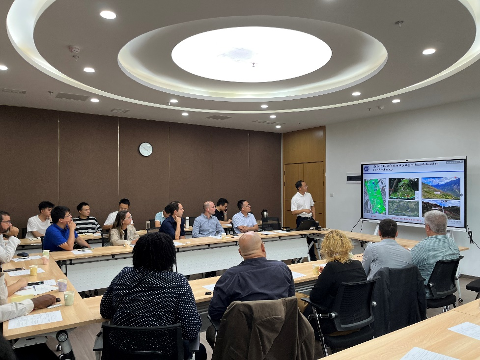 中国地质调查局成都地质调查中心教授铁永波首先分享了在地质灾害监测和评估方面的研究成果,向外方团队着重介绍了我国关于地质灾害监测的学术研究和工程建设现状,引发了学者们的热烈讨论和交流。