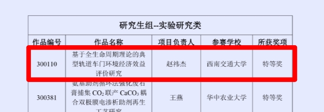 大赛共吸引了全国200余所高校参加,并最终从提交的1000余份作品中评选出特等奖22项,一等奖60项、二等奖120项、三等奖157项。BEATS员工赵祎杰荣获研究生组实验研究类特等奖,获奖作品为《基于全生命周期理论的典型轨道车门环境经济效益评价研究》。