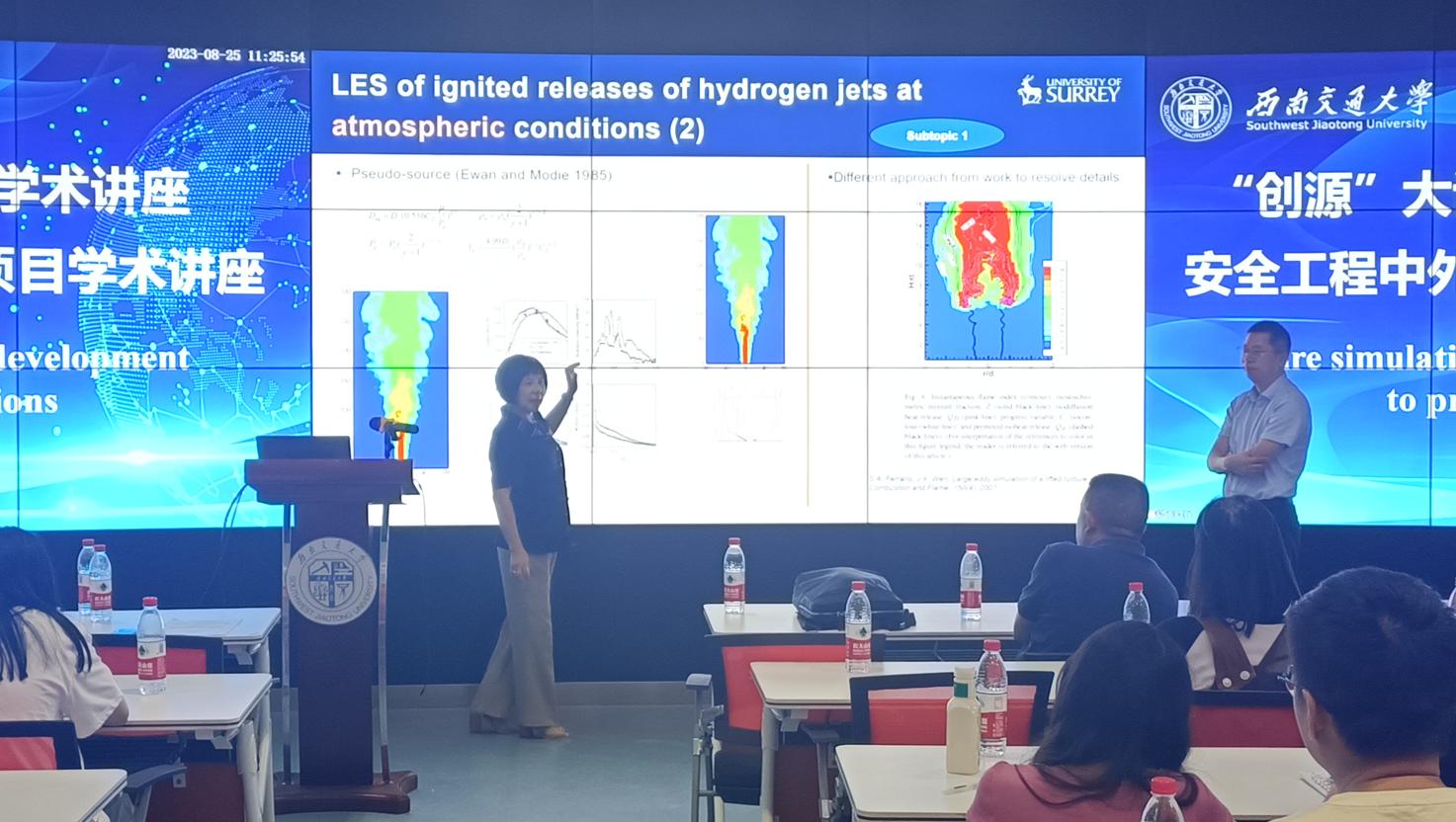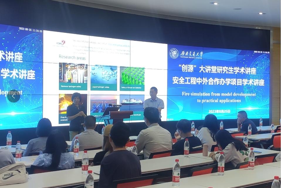 为推动国际化示范公司建设,开阔师生学术视野,提高公司研究生和中外合作办学项目员工的科研和创新能力,进一步营造良好学术氛围,2023年8月25日下午,BEATS张玉春教授特邀英国萨里大学Jennifer Wen教授在犀浦校区X4243会议室举办学术讲座,主题为“Fire simulation from model development to practical applications”。讲座由消防工程系张玉春教授主持,30余名师生参加讲座。