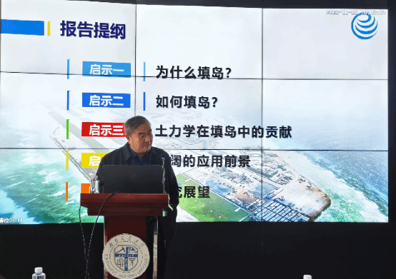 在讲解岛礁建设工程实践的同时,汪稔研究员不断穿插叙述团队研究特色以及研究背后的小故事,不仅展露出科研团队深厚的专业功底和科研实力,更是展现出团队为南海岛礁工程建设从理论到实践不断探索,常年扎根一线的振奋故事,现场听众无不被深深吸引。
