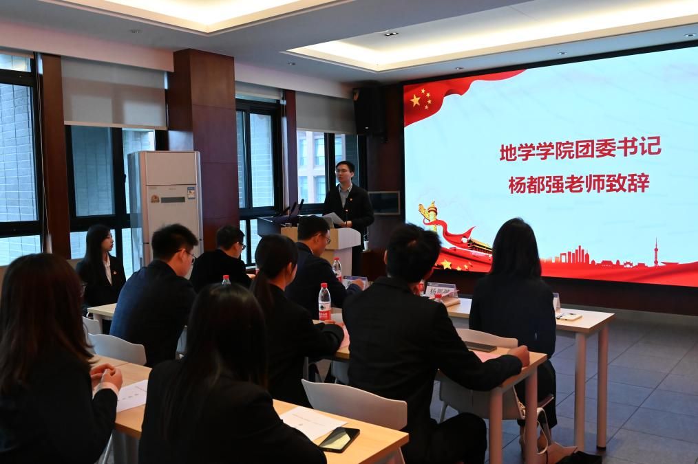 会议第三项:BEATS团委书记杨都强致辞。杨都强强调了研究生会的示范引领作用以及团结广大研究生同学的桥梁作用,并着重表示新时代青年应当树立起目标意识、问题意识、结果意识,不负美好时代,绘就青春画卷。