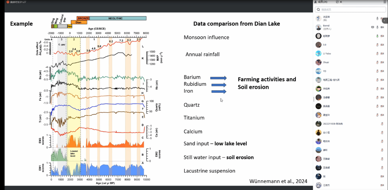 Bernd Wuennemann教授以德国柏林自由大学地球科学公司为例,首先介绍了该公司的实验室组织情况及各实验室的分工,并强调固定的实验室管理人员和硕博研究生共同参与实验室管理的必要性。随后,分别就实验室管理人员的职责、实验室基本规则进行了详细说明,如实验室管理者应当定期为员工组织实验课程、负责仪器的维护保养、实验日程安排等。Bernd Wuennemann教授特别强调开设常态化实验课程的重要性,并根据公司的学科背景和专业特色,提出了实验课程安排的具体建议。最后,他以自身科研工作为例,分享了粒度分析实验的注意事项、实验数据的处理方法,以及粒度分析在不同沉积环境中的应用,从理论到实践生动地展示了一次完整粒度实验的具体步骤。