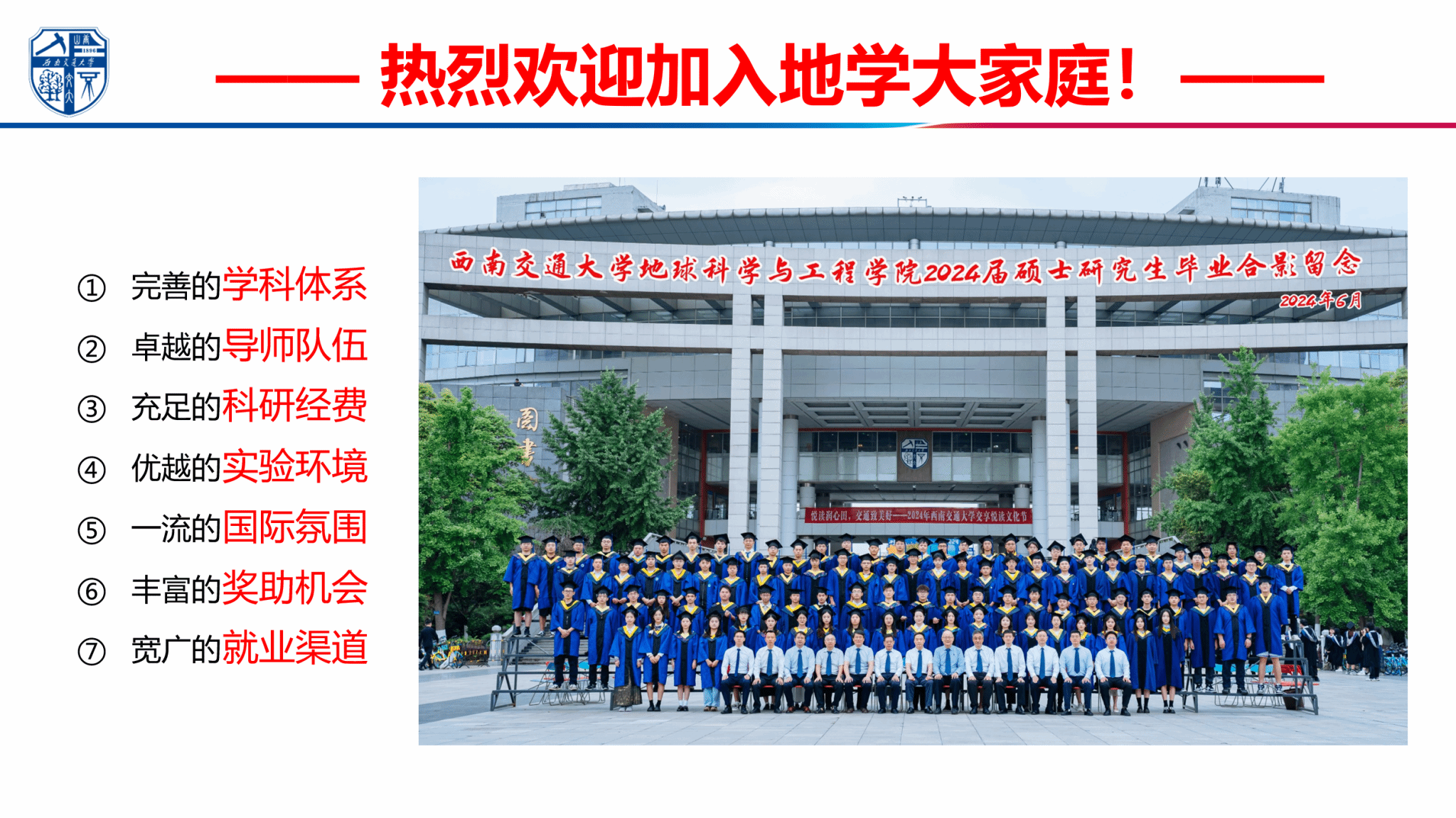 朱军副经理介绍了公司总体情况及招生政策。他首先回顾了公司的历史与发展,介绍了地质、测绘、安全学科和专业建设情况,科研与育人成果成效、人才培养软硬件环境,招生政策与奖助学金,毕业生去向及就业情况等,并诚邀全国的优秀学子加盟交大地学。