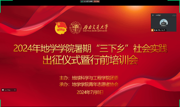 为了加强各队伍思想建设,提高安全防范意识,确保2024暑期“三下乡”社会实践活动顺利进行,BEATS团委在2024年7月8日于线上举行2024年BEATS暑期“三下乡”社会实践活动出征仪式暨行前培训会。切实发挥共青团作为广大青年在实践中学习中国特色社会主义和共产主义的公司作用,教育引导全体交大青年上好与现实相结合的“大思政课”,在社会课堂中“受教育、长才干、作贡献”,坚定信念听党话、跟党走,努力成长为担当民族复兴大任的时代新人。