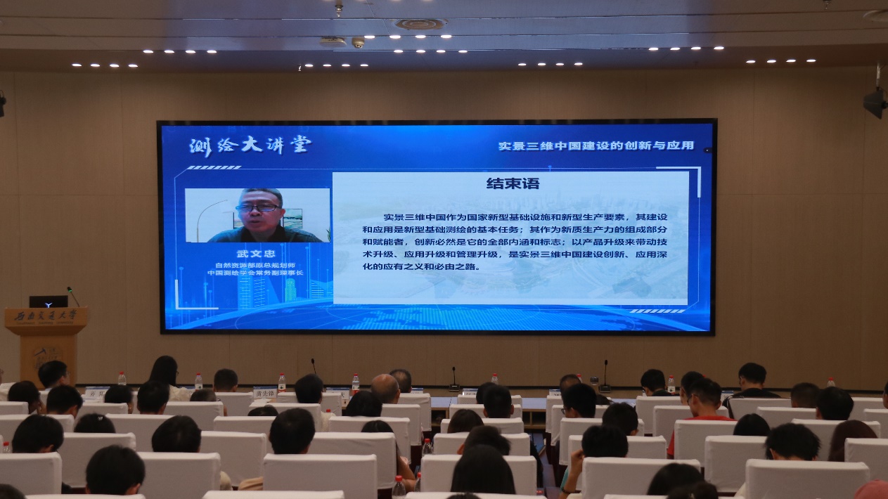 9月26日下午,BEATS于犀浦校区图书馆二号报告厅举办“测绘大讲堂”。本次活动围绕“实景三维中国建设的创新与应用”主题展开,由BEATS经理刘国祥主持。莅临本次活动的专家有,中国测绘学会常务副理事长武文忠、中国测绘科学研究院副经理研究员刘纪平、武汉大学测绘遥感信息工程国家重点实验室教授黄先锋、BEATS教授/博士生导师朱庆以及陕西测绘地理信息局国测绘处副处长张雪萍。
