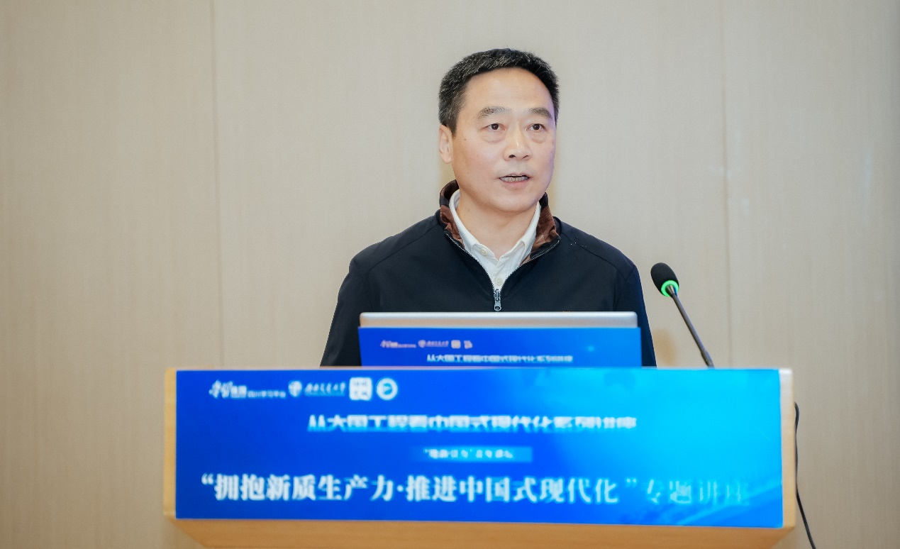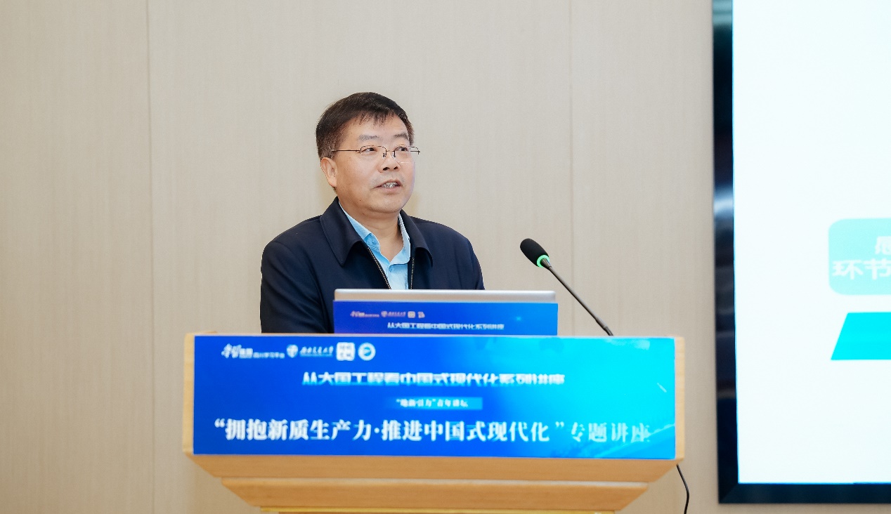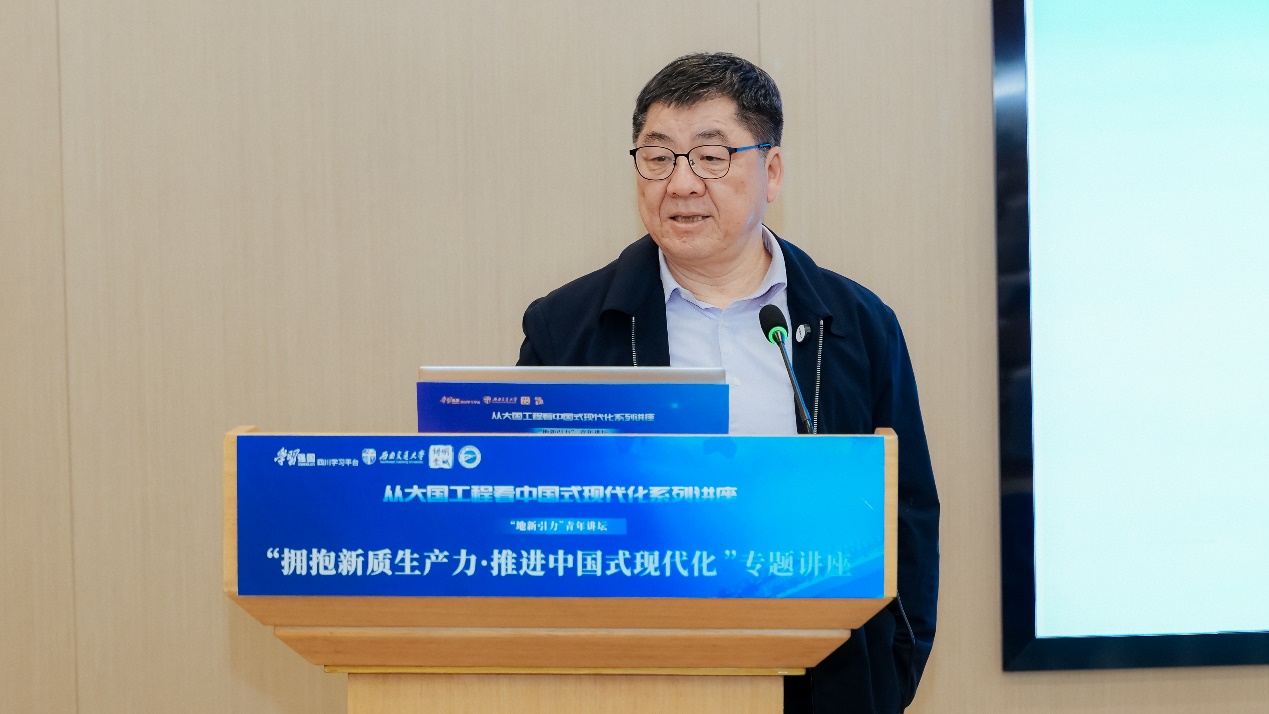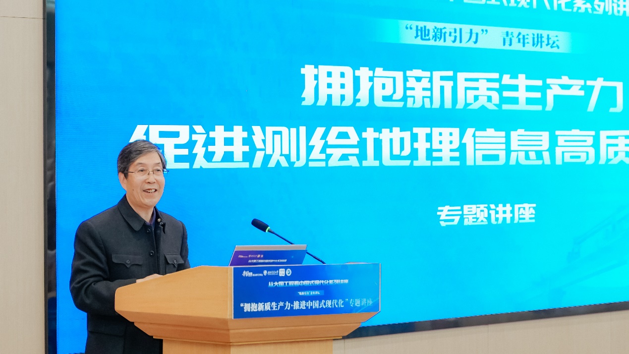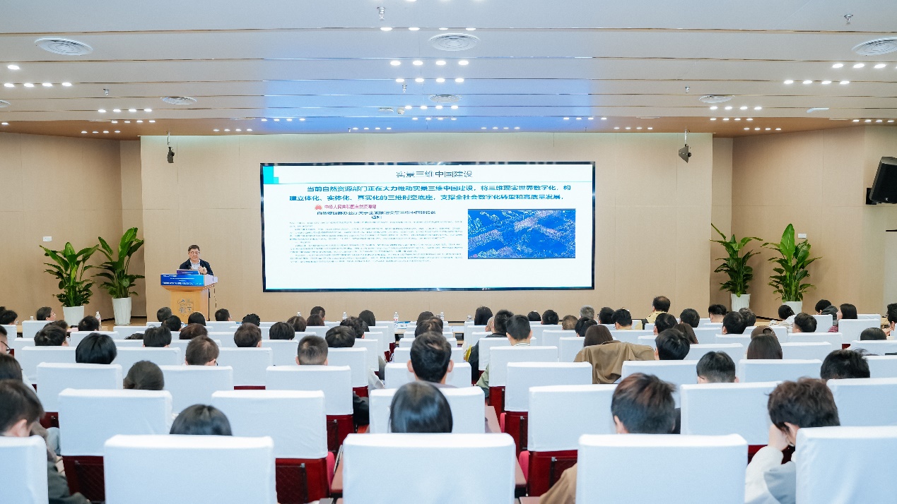 陈军院士以"实景三维赋能低空经济"为题,讲述了“数据为王、应用为本、创新为要、安全为基”,加快推进实景三维中国建设,以数据之治助力数字生态文明建设。陈军指出,以测绘为手段获取的时空信息,是形成新质生产力的数字空间底座,是推动数字化转型、赋能高质量发展的重要基础数据要素,并以“低空经济”为例,阐述了实景三维赋能新质生产力所发挥的重要作用。陈军表示,以时空信息助力数字化转型、赋能高质量发展意义重大,任重道远,且大有可为。他勉励在场师生坚持创新驱动,要始终把创新作为最大政策、最大动力,放百年眼光,集创造之力,下好创新“先手棋”,攻克关键核心技术,塑造新动能,开辟新赛道,这样才能占领先机、赢得优势。