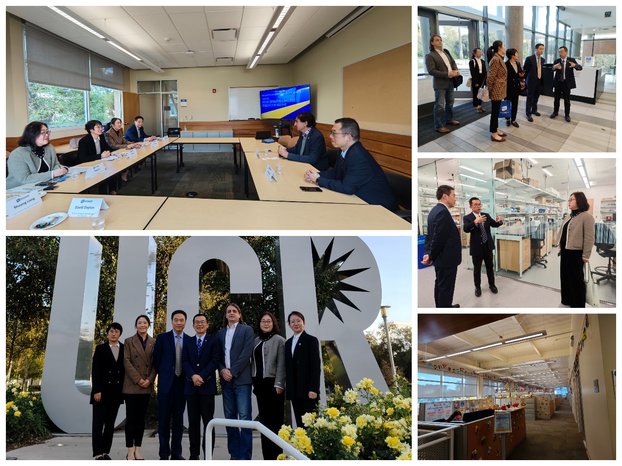 随后,代表团前往加州大学河滨分校进行访问,受到该校国际事务处副教务长Marko Princevac、国际招生与战略发展助理教务长Jun Wang及继续教育公司项目开发总监David Dayton的热情接待。双方针对未来合作模式、员工硕士项目申请要求、全球团队派遣展开讨论并达成初步共识。随后,代表团还参观了加州大学河滨分校教学楼、员工支持服务中心、员工科研创新中心,对公司实验室设施和校园环境表示高度赞赏。