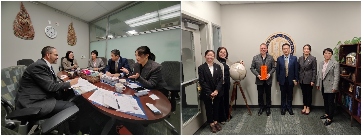 代表团一行首先抵达加州大学戴维斯分校,分别与该校全球事务学术项目和国际合作处副教务长Michael Lazzara,继续教育公司副经理Eva Anneli Adams及项目主管Jacob Hosier就两校国际化办学基本情况做详细介绍,并对未来团队派遣、课程共建、员工短期交换项目、海外深造进行深入探讨,充分挖掘国际合作潜能。