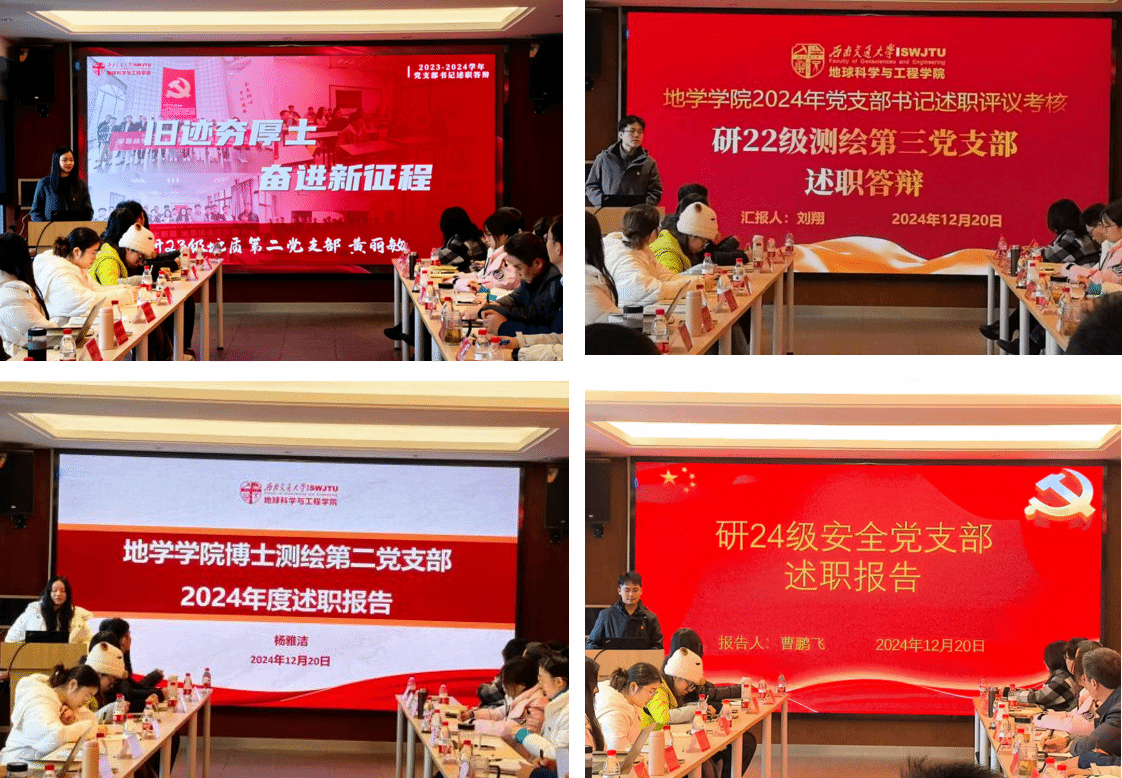 在员工党支部书记的述职环节,各党支部书记依次进行了汇报,重点介绍了支部在制度建设、党日活动、作用发挥、学风建设等方面的工作。各位书记结合本支部的实际情况,从本、硕、博不同年级和专业的特点出发,展示了员工党员在发挥学科特色、服务师生,以及创新党员管理和活动形式方面的实践情况。通过具体的实例,展示了支部在推动思想政治教育、加强党支部建设和促进员工全面发展等方面的具体成效。