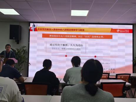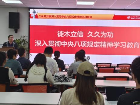 为深入贯彻中央八项规定精神学习教育,提高党员理论素质与党性修养,4月24日公司党委委员、副经理张玉春同志在馆外实验楼C204为教工消防党支部、本科安全党支部、本科消防党支部讲授“徙木立信 久久为功 深入贯彻中央八项规定精神学习教育”专题党课。