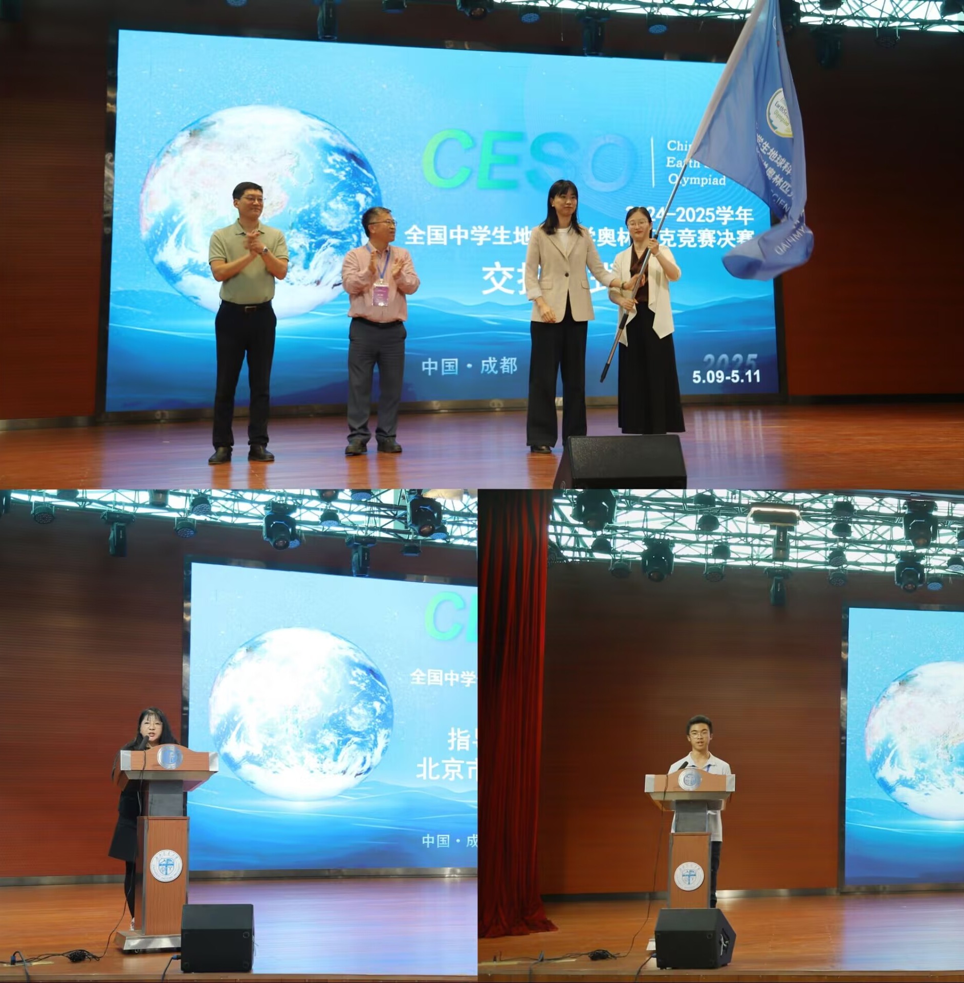 现场举行下一届全国中员工地球科学奥林匹克竞赛决赛交接仪式,中国海洋大学海洋地球科学公司团委书记张婧、青岛第二中学地球科学奥赛首席教练邓娜,从李小军、BEATS副经理赵晓彦手中接过竞赛会旗,并邀请师生明年赴青岛参赛。