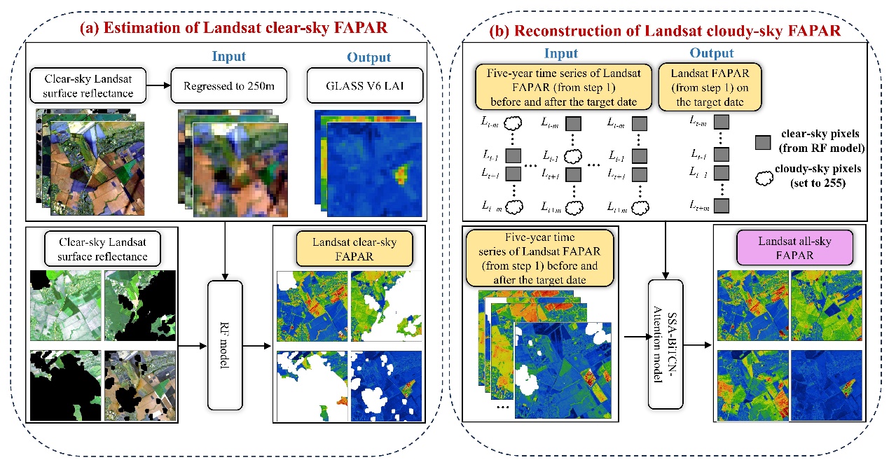 论文详细信息:Guodong Zhang, Gaofei Yin*, Wei Zhao, Meilian Wang, Aleixandre Verger, 2025. A deep learning method for generating gap-free FAPAR time series from Landsat data. Remote Sensing of Environment, 326:114783.
