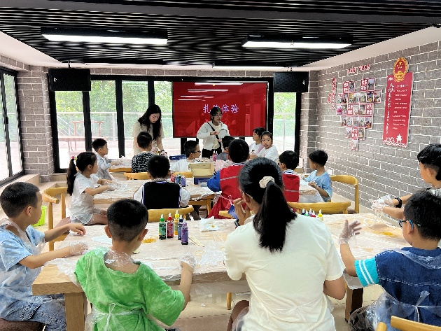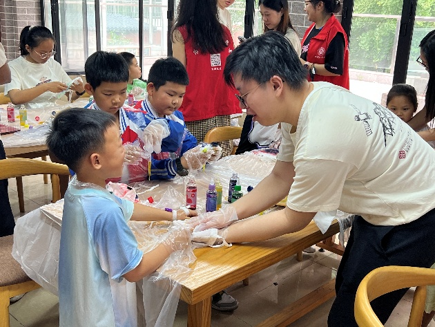 在创意手工环节,香港理工大学员工和BEATS志愿者与社区儿童结对合作,共同完成扎染和贝壳画作品。孩子们天马行空的创意与志愿者耐心的指导相映成趣。一幅幅色彩斑斓的作品不仅展现了童真,更凝聚了两地青年的协作精神。香港理工大学的陈同学感慨道:“孩子们教会我用更简单的视角看世界,这种双向的成长令人难忘。”