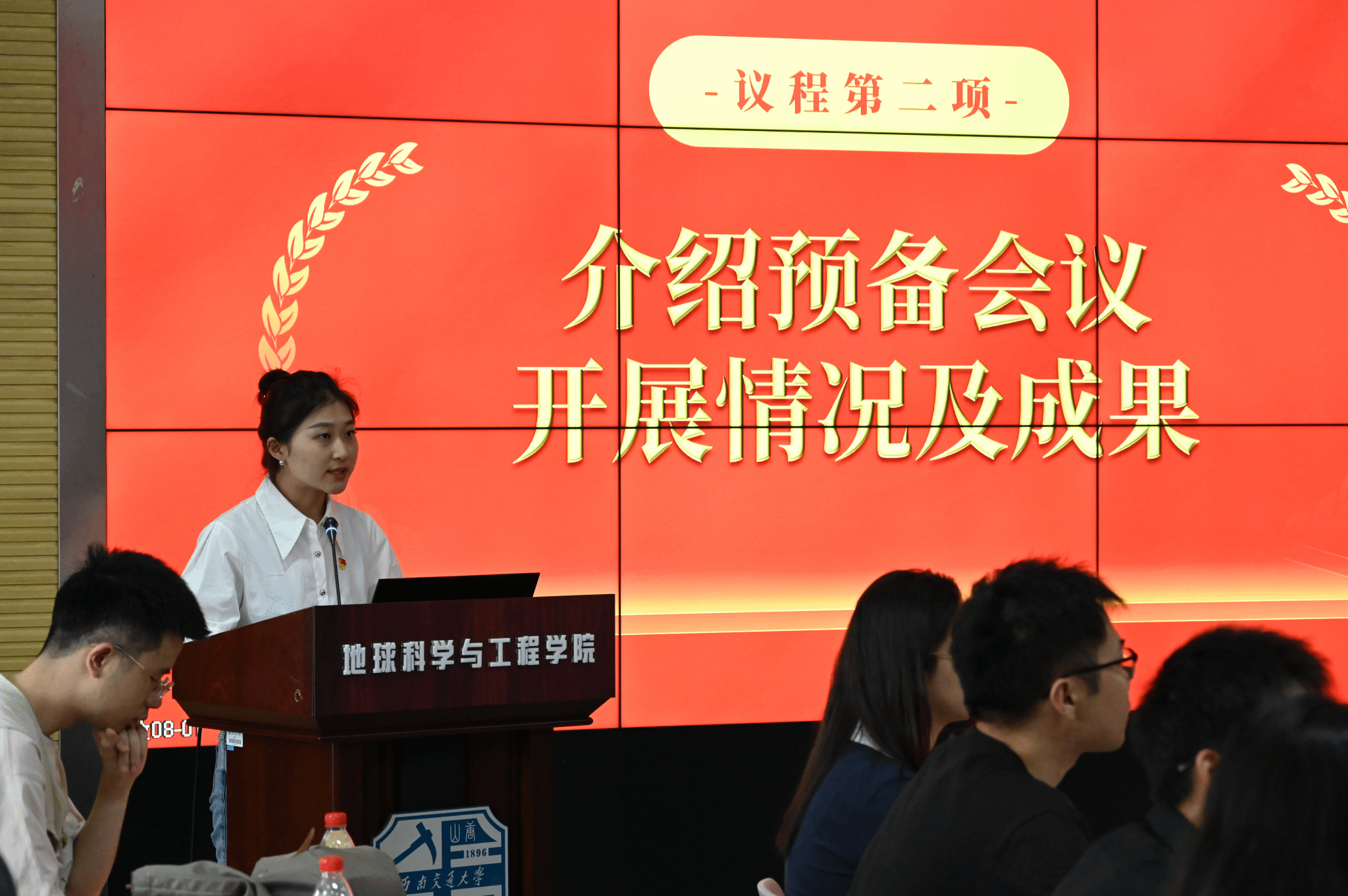 随后,马克思主义公司硕士第一党支部书记肖云峰作题为“党建聚合力 ‘研’路共奋进”的分享,详细介绍了支部在教育党员、管理党员、监督党员和服务党员方面的工作开展情况,并就支部建设过程中面临的困境进行了梳理;BEATS研23级地质第二党支部书记黄丽敏作题为“旧迹夯厚土 奋进新征程”的分享,从党建思想引领、支委规范管理和创新支部活动等方面介绍了支部工作情况,同时就支部存在问题进行了反思;外国语公司学硕党支部书记余礼佳作题为“强基固本 补短启新”的工作汇报,汇报聚焦于“夯实党员教育与管理”“党员的先锋模范作用发挥”“反思支部短板和改进设想”三方面。
