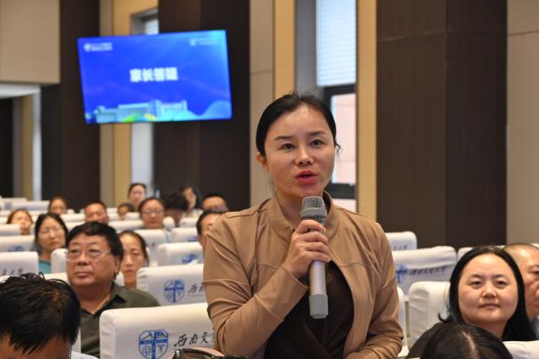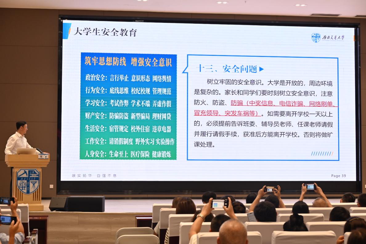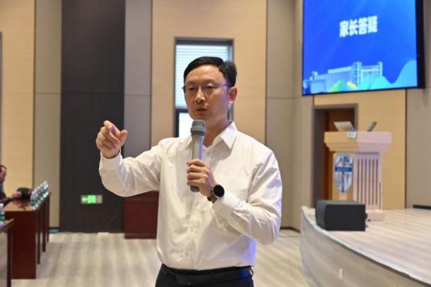 随后,郑波从员工的学业规划、日常管理以及安全教育三个方面给予新生家长一些参考和指导。学业规划方面,重点阐述了大学学分制、大学考试方式等学业要求,同时在学业之外的课余生活,他鼓励新生同学积极参与到公司的社团活动、体育运动以及科创竞赛之中。除此之外,在转专业、大学毕业后的方向、综合素质评价等热点问题上也做出了解答,让家长对员工的大学学业以及发展方向有更清晰的了解。
