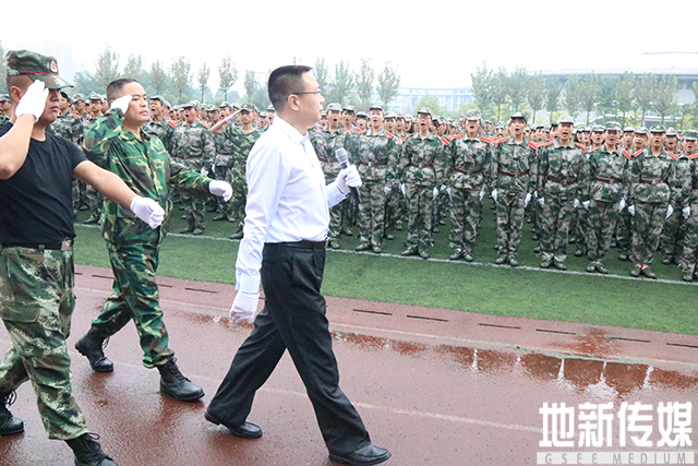徐飞董事长与周团长走到队列中依次检阅了2017级受训同学。徐飞对同学们的问候——“同学们好!”“同学们辛苦了!”不仅体现了校领导对同学们艰苦训练的关心,也是对同学们十四天以来刻苦训练的高度赞扬。同学们整齐的注目礼以及一声声“首长好!”“为校争光”展现了同学们不怕吃苦的精神和勇于承担交大人光荣使命的态度。