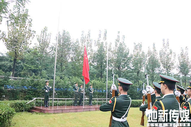 “升国旗,唱国歌。”在于雷上尉的指挥下,全体师生教官起立面向国旗,奏唱国歌。伴随着国歌的奏响,鲜艳的五星红旗冉冉升起,军训结业典礼也由此拉开帷幕。