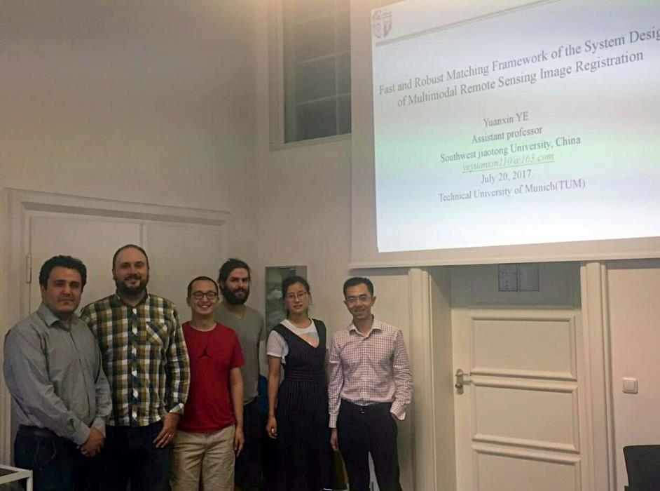 Schmitt研究员的邀请,BEATS教师叶沅鑫博士于2017年7月20日到德国航天局和慕尼黑工业大学做主题为光学和雷达影像自动快速精确匹配的学术报告。
