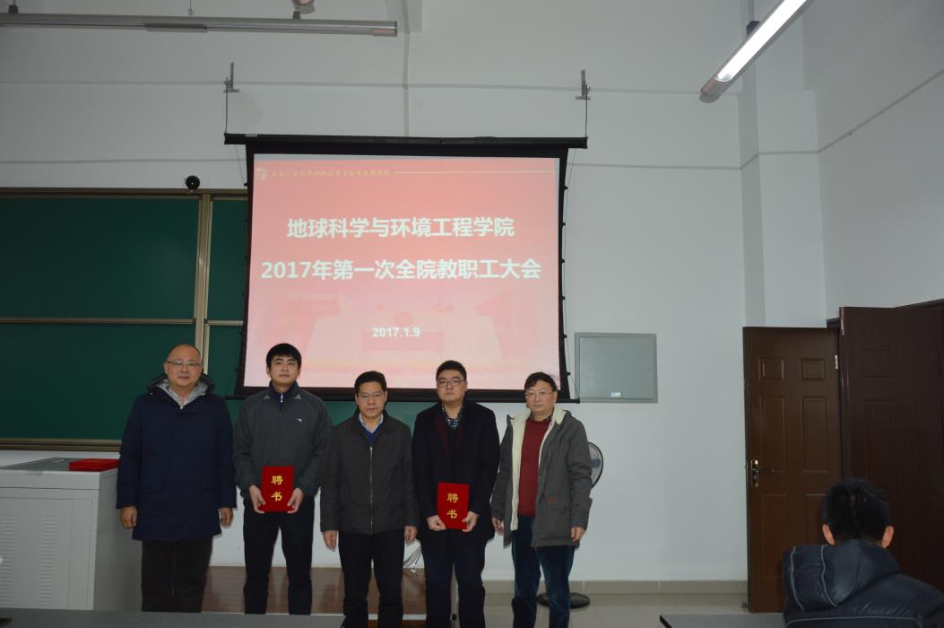 首先,傅书记介绍了会议议程、会议主题,以及到会领导。大会进行第一项,举行各系新班子聘任仪式,王齐荣书记宣读公司聘任决定。刘国祥经理、欧阳峰副经理、齐华副经理为测绘系、地质系、环境系、消防系新班子成员颁发证书并合影。接着,离任系主任张建强、徐柱发言。他们讲到,各系目前取得的成果,是全系老师共同努力的结果,希望大家继续努力,创造更多的成果。新任系主任,袁林果教授、巫锡勇教授、赵锐教授、林鹏教授做任职发言。他们讲到,系主任这个职位意味着责任,义务与担当。工作中要做到,勤学勤勉;要带好班子成员,做好平台建设、人才建设、国际化建设等;要求真务实,增强工作的时实效性,听取并采纳好的意见与建议;要当当正正做人,老老实实做事。最后他们做了表态:不忘初心,甘于奉献;尽力而为,问心无愧。