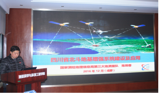 四川省第一测绘工程院陈现春总工做了题为《四川省北斗地基增强系统建设及应用》的学术报告会。陈现春总工指出,该系统是与BEATS卫星导航定位研究中心黄丁发教授科研团队的科研成果紧密结合的,作为全国最大北斗地基增强系统,已经在四川建成并投入使用,该系统包括100座基准站组成的基准站网络、数据处理系统、运营服务平台、数据播发系统和用户终端,解决了我省复杂地形条件下的基准站新建、改造和整合等技术难题,填补了我省北斗高精度位置服务的空白。该系统兼容中国北斗、美国GPS、俄罗斯GLONASS三大卫星系统,是目前国内站数最多、覆盖范围最广、技术水平领先的省级北斗基准站网络,各项指标均达到或优于当前GPS地基增强系统水平。