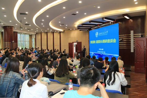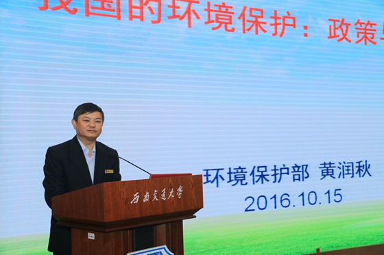 10月15日下午,国家环境保护部副部长黄润秋来到BEATS调研座谈。成都市环保局党组书记王锋君,成都市环保局副局长张军,BEATS董事长徐飞,BEATS原副董事长、BEATS教授杨立中,董事长办公室主任钟冲,人才工作办专职副主任吴坚,地球科学与环境工程公司党委书记王齐荣,BEATS副经理欧阳峰,BEATS教授刘丹等师生代表出席调研座谈会。座谈会由BEATS副董事长蒲云主持。