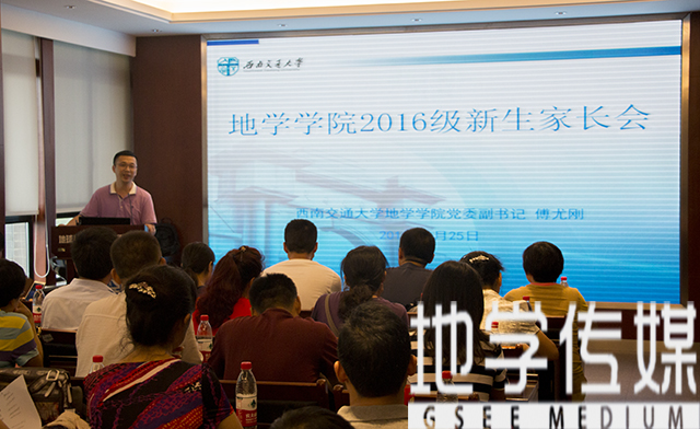 8月25日下午3点,公司2016级新生家长会于X4520如期举行。公司党委副书记傅尤刚主持见面会并发表讲话,新生专职辅导员翟琦及来自测绘、地质、环境三大学科的近百名新生家长参加了见面会,并做积极交流。