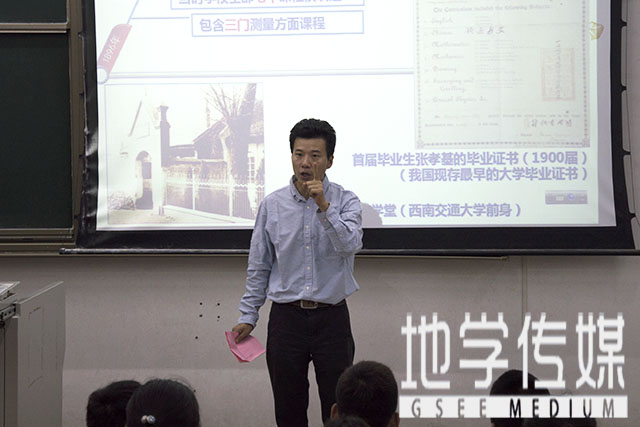徐柱教授从院系前身——山海关北洋铁路官学堂创办之初(1896年)开设的测量与抄平课程为契点,介绍了测绘专业的悠久历史。从专业多年来做出的卓著贡献、培养出的大批优秀人才、开设以交通特色鲜明的测量专业三个方面阐述了公司测绘专业“声誉卓著”。他还提出了个人对于测绘学科的理解——“感知地球”——由观测系统测得数据再由信息系统进行分析处理。而这一整套运作体系又是跟测绘专业三种细分专业密切相关。在他看来,测绘就是具有信息科学与技术性质的高技术,“其产业前进非常好,诸多环境生态问题都依赖于测绘科学”。而范东明教授则认为测绘是土木和信息之间的桥梁,即土木的信息化,“它是各行各业的渗透”。张建强教授、游为博士等则给大家梳理了学科的专业行知识及基本概念,并指出专业未来可观的就业方向及发展前景。同时,老师们也鼓励同学们要自觉培养学科兴趣、专业感情,在学习过程中多思考,多交流。