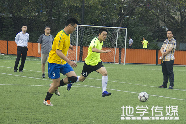 5月6日下午18时,BEATS“同冠杯”第四届教职工足球赛半决赛在九里校区体育场拉开战幕。对阵双方为BEATS和后勤保障处。公司党委书记徐瑞堂、公司党委副书记傅尤刚亲临赛场,为公司足球健将助威。经过历时近一小时的鏖战,在场上队员的默契配合下,最终地学足球队不负众望,以3:0的绝对优势完胜对手,成功挺进决赛。本场比赛的三粒进球,分别由17号汪鹏贡献2球和21号何毅贡献1球,为比赛奠定胜局。