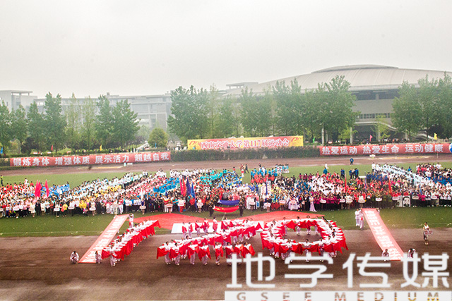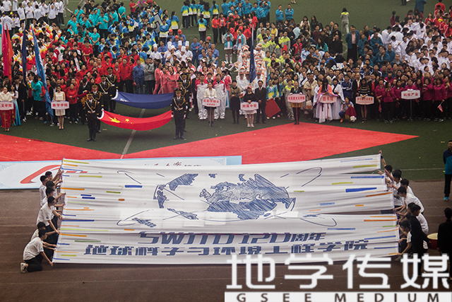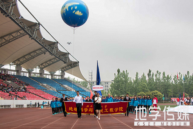 “雄赳赳,气昂昂,迎面向我们走来的是BEATS的代表队。”伴随着主持人的解说,方阵队伍昂首挺胸、精神抖擞,在党委徐瑞堂、傅尤刚书记的带领下,迈着铿锵有力的不发,喊着嘹亮的口号向主席台走来。方队上方漂浮着的“地球”图案的气球展现了公司特色。随后,方队走至主席台前,迅速散开,开始了主题为“校庆120”的方队表演。师生们用纸板和横幅衔接巧妙地呈现出“1”、“2”、“0”字样。方阵中的同学手拿花捧,散开为花朵状队形。横幅相互交织而形成的“蓝色地球”画面让在场的观众一一喝彩,体育场上响起了热烈的掌声。