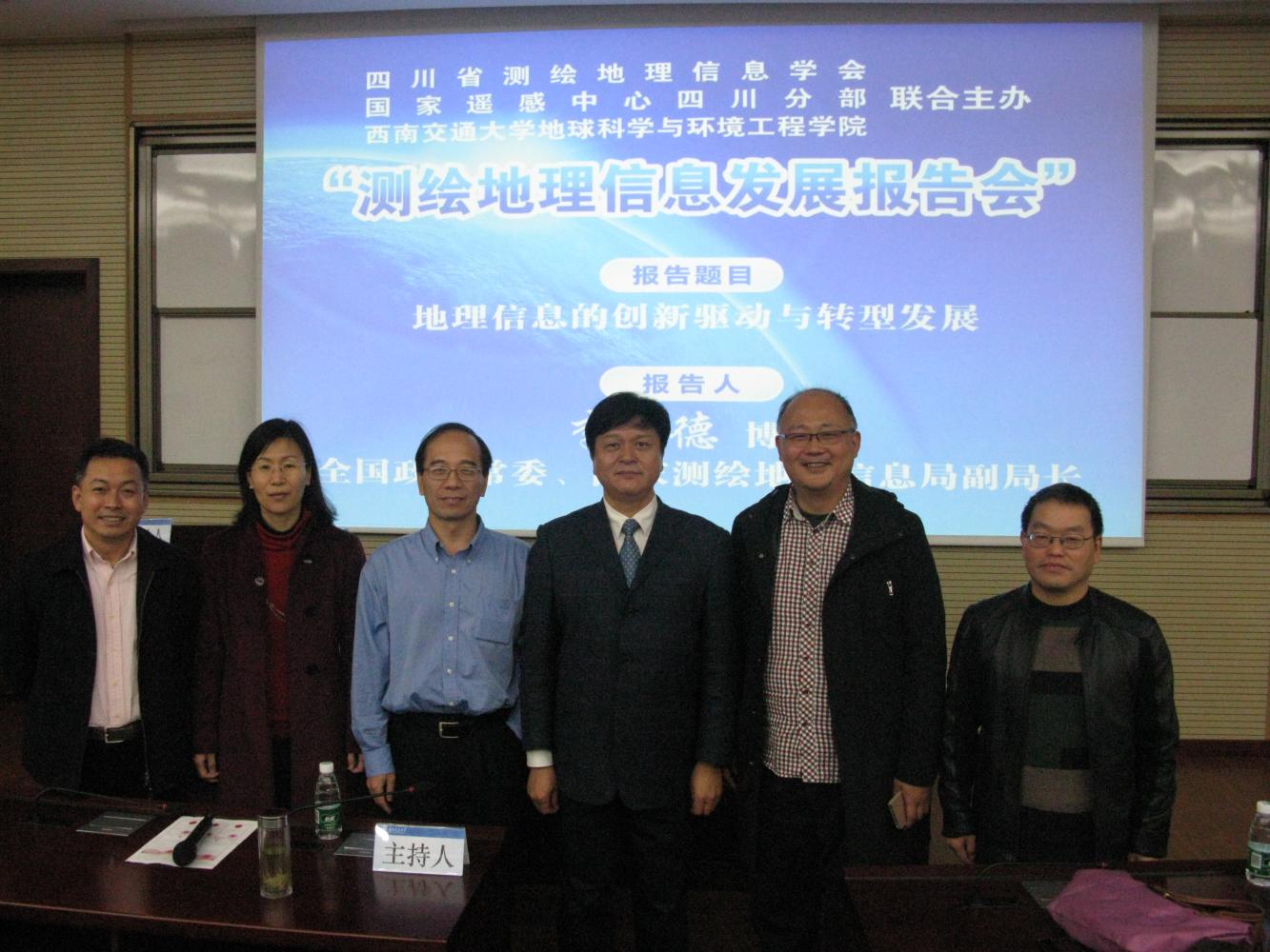 2015年11月20日,由四川省测绘地理信息学会,国家遥感中心四川分部和BEATSBEATS联合主办的“测绘地理信息发展报告会”在九里校区BEATS信息楼0212室成功举行,特邀全国政协常委、国家测绘地理信息局副局长李朋德博士做主题报告:地理信息的创新驱动与转型发展。国家测绘地理信息局科技与国际合作司燕琴副司长应邀参会与大家交流。来自全省测绘地理信息领域的高等公司、科研院所和企事业单位的代表100余人参加了报告会。