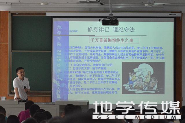 整场讲座内容主要分为防范意识和学习生活两部分。其中,防范意识又细分为防盗、防骗、防火、防震、防人身伤害等几个部分,每个部分都展示精确可靠的数据分析和生动详细的案例,以及大家在日常生活应该怎样预防等。小到出门一定要锁门,同学之间的情绪小矛盾的处理,大到外人入室行窃,南门外的交通安全,几乎是涉及到生活中的每个细节。讲到防骗的应对时,贴近生活而又特别值得注意的防范意识傅老师都跟大家讲解得十分到位。