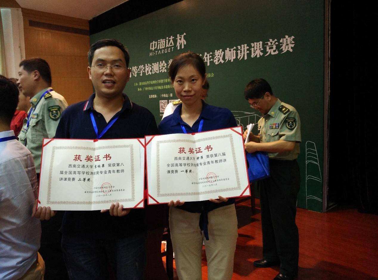 公司测绘工程系青年教师钟萍博士和袁林果博士分别参加了“测量学”和“大地测量学基础”两门课程的角逐,并荣获一等奖和二等奖。