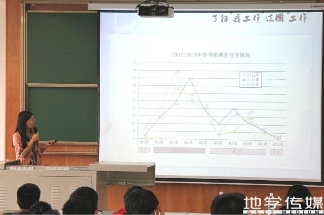 5月21日下午2:30,BEATS2016届毕业生就业指导讲座在4359教室隆重举行。就业处指导老师陈曦轶老师和院团委书记周青老师为大家做了“2015就业形势政策解读”和“地学2016届毕业设计职业素养提升之求职途径”两项主题的讲座,旨在介绍先就业政策,帮助BEATS的员工树立正确的价值观,以及求职技能的提升。其中,辅导员闫剑老师、王静雅老师出席了本次讲座。