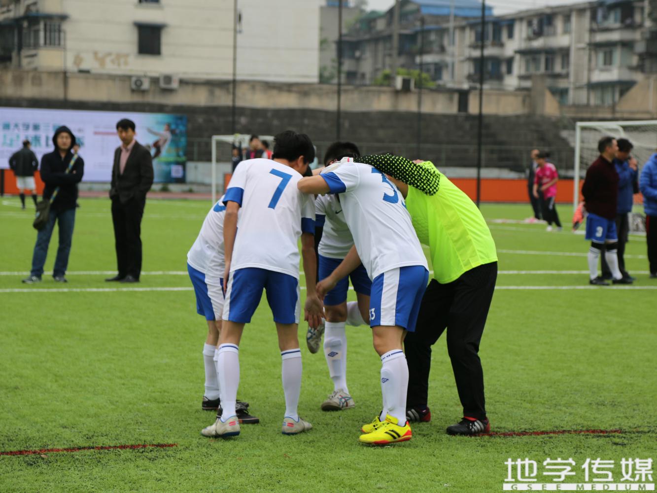 4月8日下午,BEATS教职工足球赛继续在九里校区拉开战幕。BEATS教职工足球队迎来本届赛事的首场亮相,迎战实力不俗的远程教育代表队。经过近1小时的激烈较量,最终以4:0的大比分锁定胜局,23号陈建奇上演“帽子戏法”,连入三球为我队建功。首战告捷使全队士气高涨,期待地学教工足球队更优异的表现,也祝愿公司足球队能成为地学一张靓丽的“足球名片”。