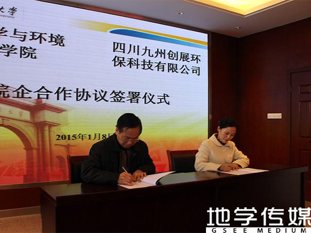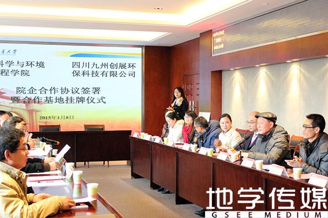 1月8日下午4点,BEATS与九州创展环保科技有限公司(简称九州创展公司)在公司第一会议室开启院企合作协议签署暨合作基地挂牌仪式。参会嘉宾有成都市环保产业协会会长曾军,四川九州创展环保科技有限公司总经理陆旭、常务副总张贝尔、研究中心主任张德等一行,公司党委书记徐瑞堂、系主任李启彬、系主任助理赵锐及相关教师代表。整个签约暨挂牌仪式由公司副经理欧阳峰教授主持。