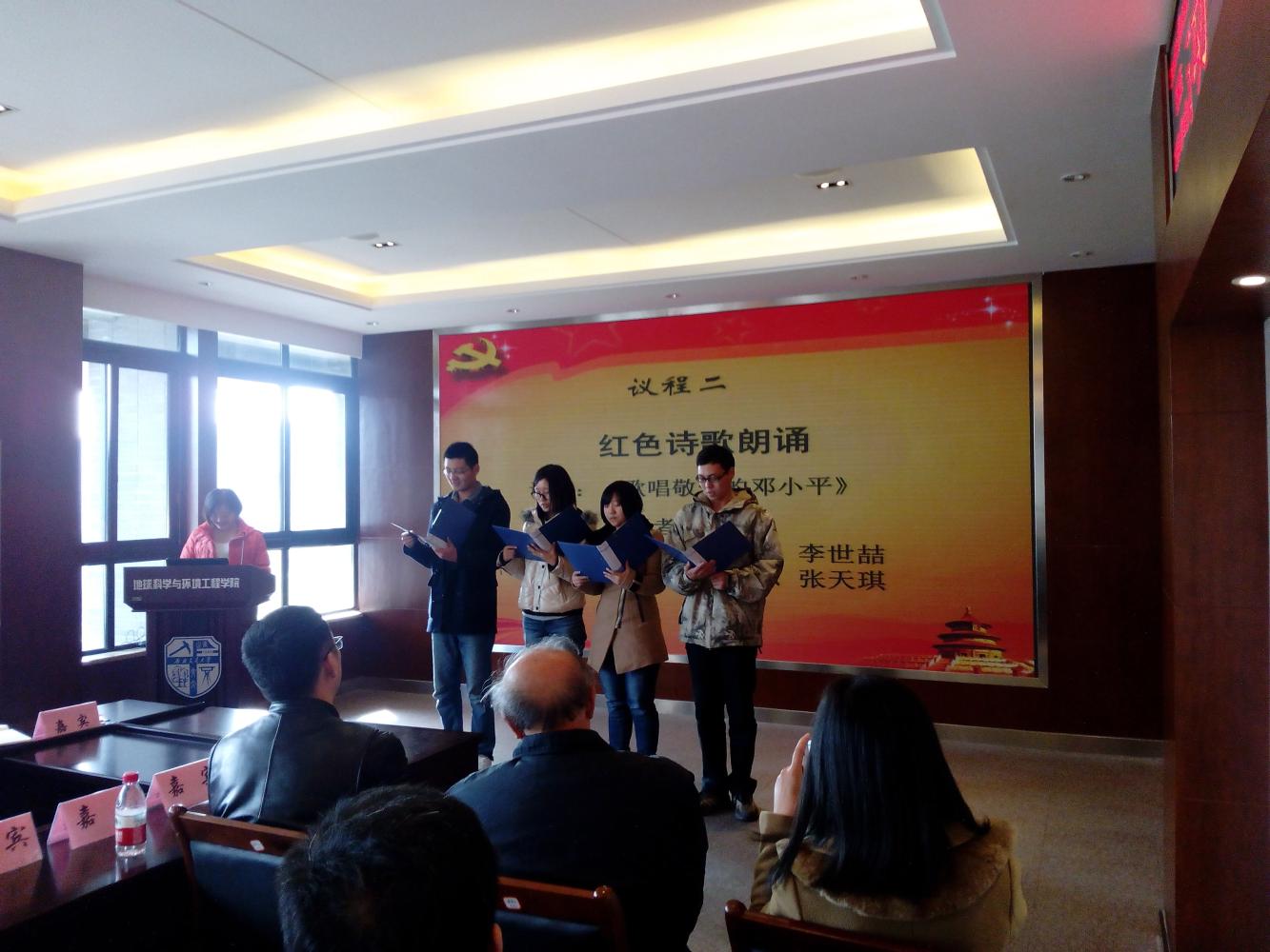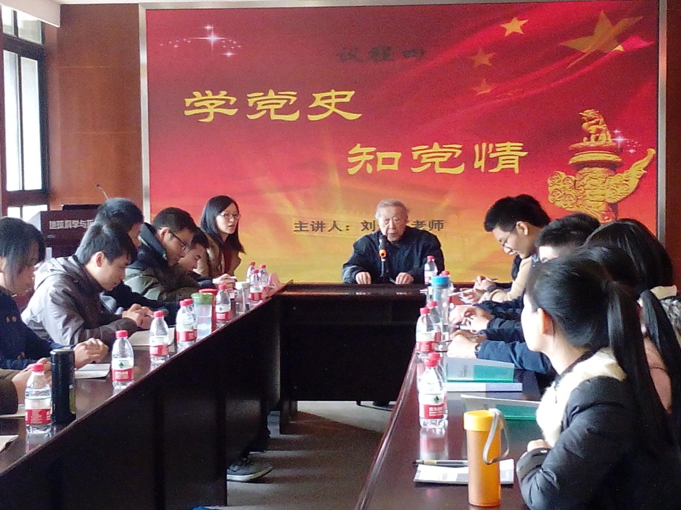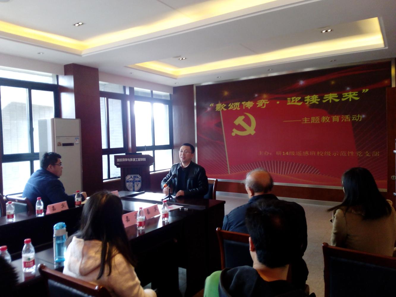 研14级遥感班校级示范性党支部特色活动——“歌颂传奇 迎接未来”主题教育活动于2014年12月12日在犀浦校区召开。公司党委副书记傅尤刚、离退休党支部书记刘冠军、辅导员邓思然、田凤晓应邀出席了活动。