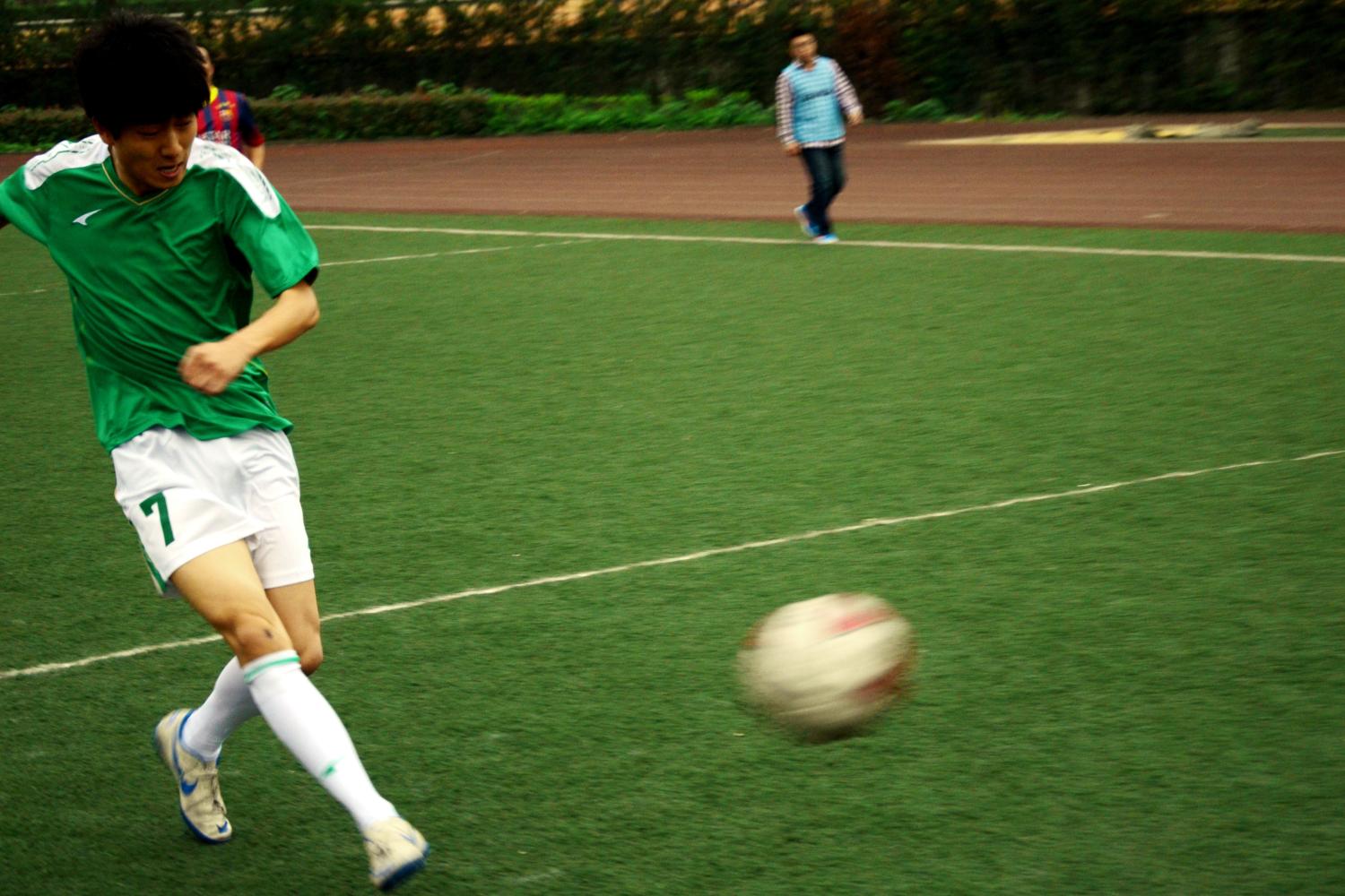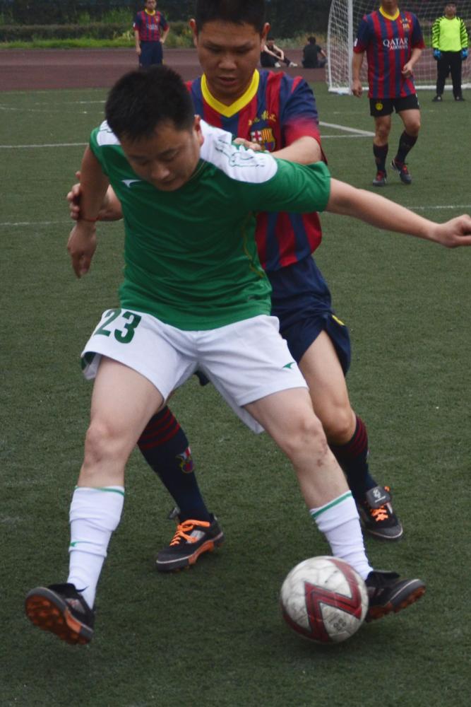 面对宿敌,公司队伍丝毫不敢懈怠,保持高度集中的精神,对每一个对方球员严防死守。比赛不过三分钟,我方7号球员刘了老师在对方门前便觅得一次头球机会,虽然球只是滑过左侧门柱,并未得分,但我们士气高涨。不久,7号球员中场断球,这次,7号球员沉着应对,带球向右突破,连过三人,在底线处和对方门将形成单刀之势,然后突然起右脚抽射,对方门将猝不及防,球进了!!!这一关键性的进球,大大提高了公司球员战胜强敌的信心。接下来失球的交运公司代表队加大攻势,几度射门未果。我方球员亦加大防守力度,未让对手获得任何可乘之机。